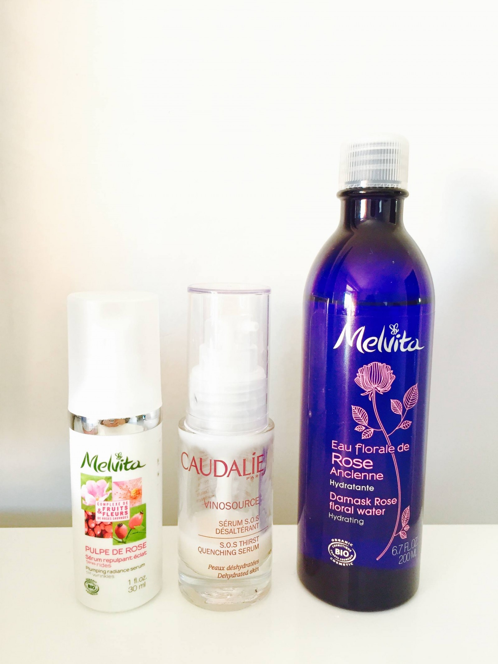 – Eau Florale de Rose Bio Melvita. Quand j’ai découvert ce produit, je me suis demandée ce que c’était. Et maintenant, je me demande pourquoi je n’avais pas intégré ce rituel dans ma routine beauté plus tôt ! C’est une eau hydratante que j’applique après avoir nettoyé mon visage et avant d’appliquer mes soins. Et je trouve que ça complète parfaitement bien l’hydratation.