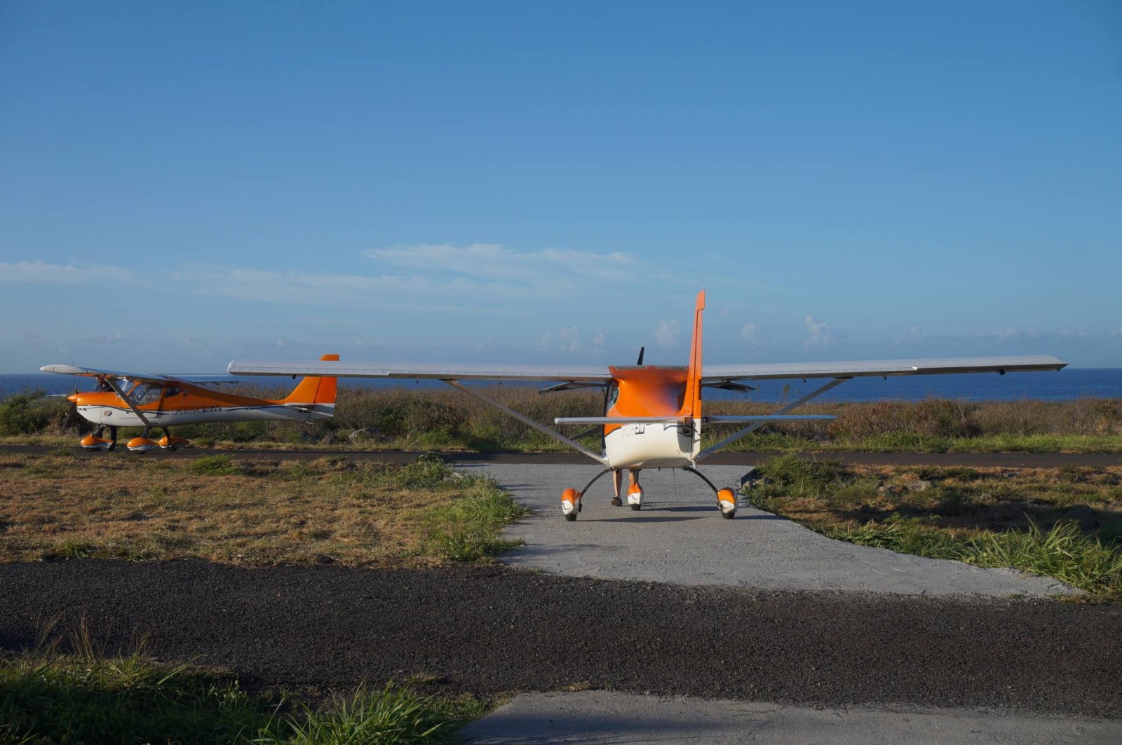 En venant sur l’île de La Réunion, j’avais envie de faire en priorité le survol en ULM de l’île. Pourquoi de l’ULM et pas de l’hélicoptère ? Parce que dans l’ULM, on est seul avec le pilote. On a donc la possibilité de bien voir autour de soi et il y a une relation de proximité qui s’installe. J’avais déjà booké mon survol avec Zen Altitude avant de partir. Il y avait beaucoup d’options possibles et j’ai pour ma part choisi le survol complet de l’île en 1h40. J’étais un peu stressée à l’idée de voler dans un si petit avion, mais j’étais tellement excitée que j’y suis allée avec impatience ! J’avais très envie de voir le Piton de la Fournaise. Du coup, j’ai opté pour un survol au départ de St Pierre car cela n’aurait pas été possible au départ de St Denis. Me voici arrivée chez Zen Altitude, le temps était merveilleux, et Johnny, le pilote, super sympa ! Mon père avait choisi de faire le survol du Cirque de Cilaos. Nos deux avions étaient prêts et nous avons décollé tôt, à 6h45, pour avoir le meilleur temps possible vu que les nuages arrivent vite dans les montagnes.