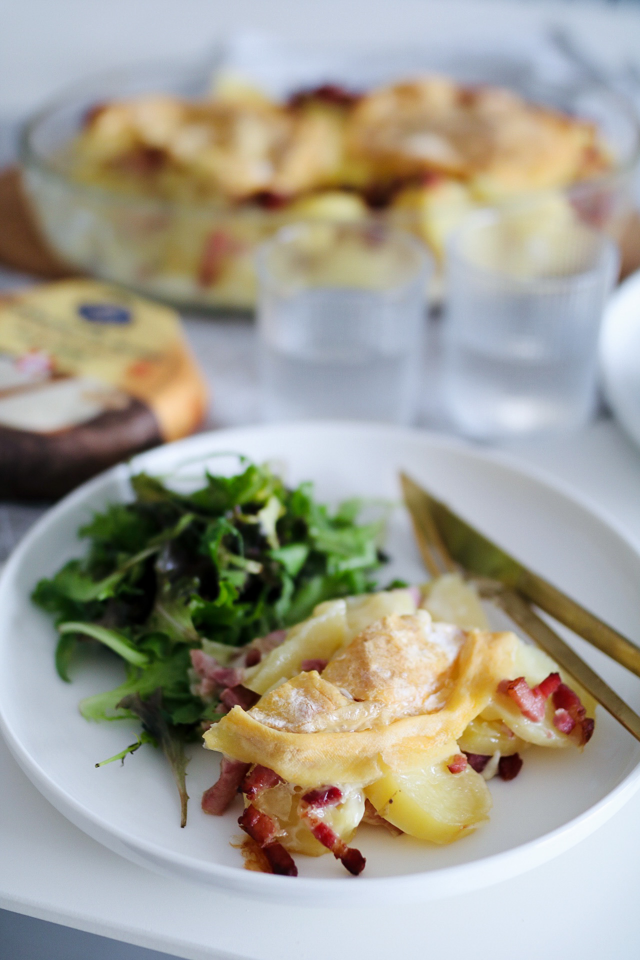 - Servir votre tartiflette avec une salade verte et une sauce huile d’olive/vinaigre de cidre/moutarde/oignons finement coupés. Ça apporte du croquant !