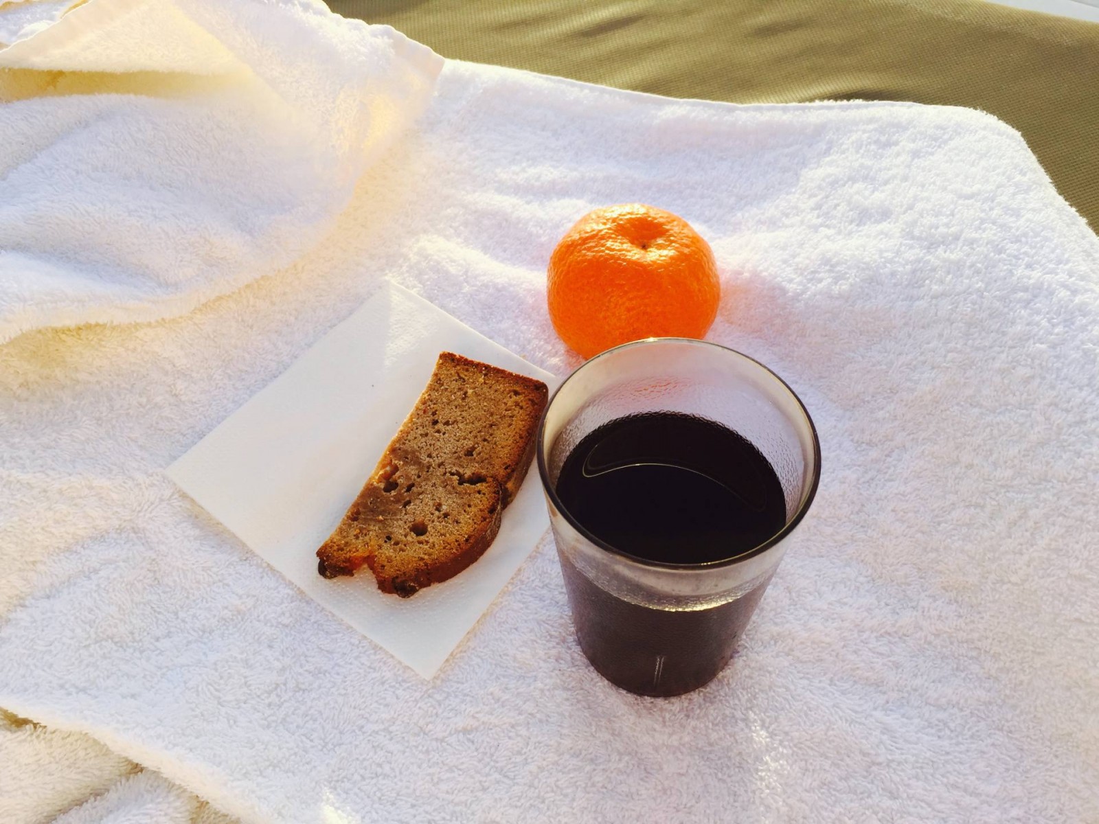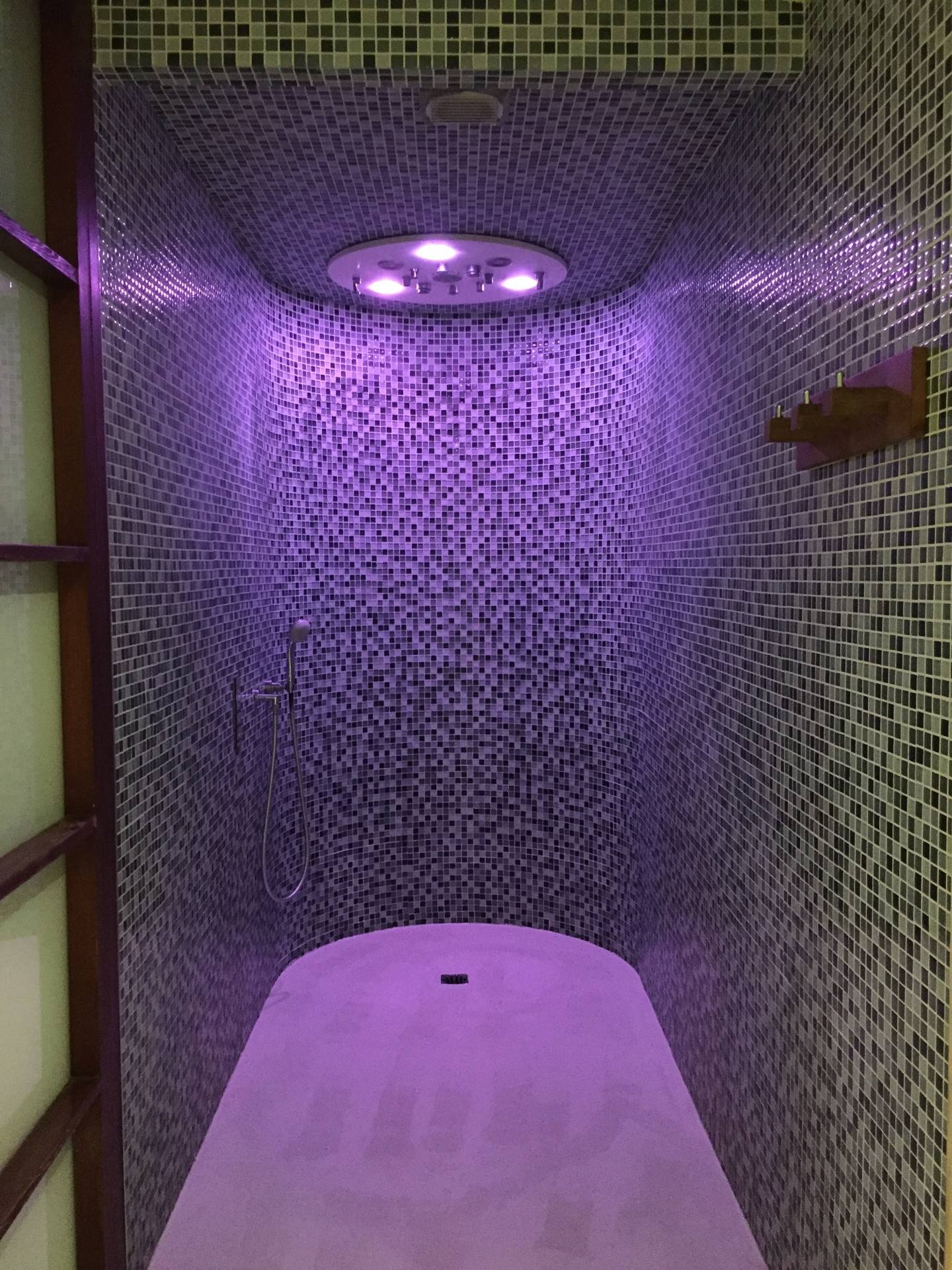 J’ai eu de la chance car il faisait gris le samedi, gris le lundi, mais un temps magnifique le dimanche. Le soleil tapait et le ciel était d’un bleu azur, pas un nuage à l’horizon. Du coup, on file sur la terrasse, direction un transat au bord du jacuzzi. Autant vous dire qu’être en maillot un 20 décembre et ne pas avoir froid relève de l’exceptionnel ! Pendant que ma maman profite d’un cours d’aquagym, je file au gommage. Et là, c’est parti ! Le gommage est au pain d’épices et à l’amande douce. Ce sont mes senteurs favorites. A peine allongée sur la table en marbre, la masseuse me fait le gommage à la main. Cela change du gant et je dois dire que c’est très appréciable. Après une petite douche, direction le massage. Allongée sur le vendre, je m’évade complètement pendant ce modelage qui me détend parfaitement. Après ça, retour un peu au soleil avant d’aller me détendre pendant 30 minutes dans une salle de relaxation juste géniale. Il y a des matelas qui ont l’air rempli d’eau. C’est très apaisant, surtout avec le casque qui permet d’écouter une musique douce, le tout dans le calme et la pénombre. C’est le paradis. Evidemment, il y aussi un sauna, un hammam, une douche à jets, des piscines avec des jets, etc