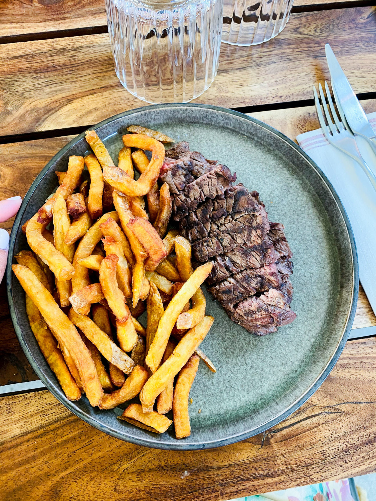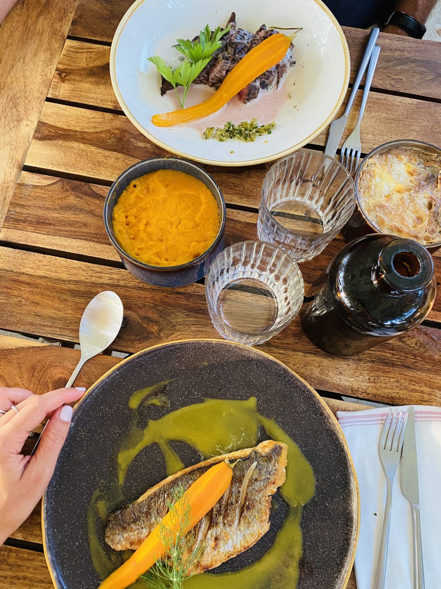 La résidence se trouve à Remoulins, à quelques minutes en voiture du site du Pont du Gard, ce qui est vraiment idéal. Évidemment, j’avais prévu d’y aller le premier soir pour voir le pont avec la lumière de fin de journée. Je vous recommande d’y aller par la rive droite. En effet, côté rive gauche, l’axe est moins sympa pour voir le pont et sa grandeur. En arrivant sur le site, le premier point de vue est sympa car l’esplanade offre une vue incroyable. En allant un peu plus loin, sur la gauche, il y a un chemin pour monter au belvédère et également pour voir le haut de l’aqueduc. La vue est vraiment superbe, et on prend assez vite de la hauteur pour le voir dans sa globalité. Avec des baskets, c’est mieux car ça glisse un peu. Si vous le pouvez, je vous recommande de vous renseigner pour faire un tour de canoé et ainsi passer sous le pont en naviguant ! Ça avait l’air vraiment top mais je ne pouvais pas le faire avec les enfants. C’est vraiment un ouvrage à voir, il est époustouflant de part sa régularité et son volume, surtout quand on se dit qu’il a 2000 ans. Un exploit ! Pour information, il y a une billetterie mais c’est pour avoir accès au musée. Pour simplement aller voir le pont, il n’y a pas besoin de payer. J’avais réservé le vendredi soir un dîner au restaurant « Les terrasses du Pont du Gard ». Je l’avais repéré sur Internet et on a passé un superbe moment. Le spot est incroyable, avec vue sur le pont, seul sur une esplanade et sous les arbres. La décoration et la terrasse sont épurées et modernes. On s’est régalés de l’apéro au dessert. Mojitos, viande, poisson, desserts joliment dressés. Tout était parfait du début à la fin, même le menu enfant qui était tout de même une bavette avec de bonnes frites ! Je vous recommande de passer absolument par cette adresse pour un dîner doux, fin et sublimé par une belle vue. Pour 3 apéritifs (dont 2 cocktails), un menu enfant, 3 plats, 3 desserts et 3 verres de vin, 142€. Autant vous dire que le rapport qualité/prix est inégalable !
