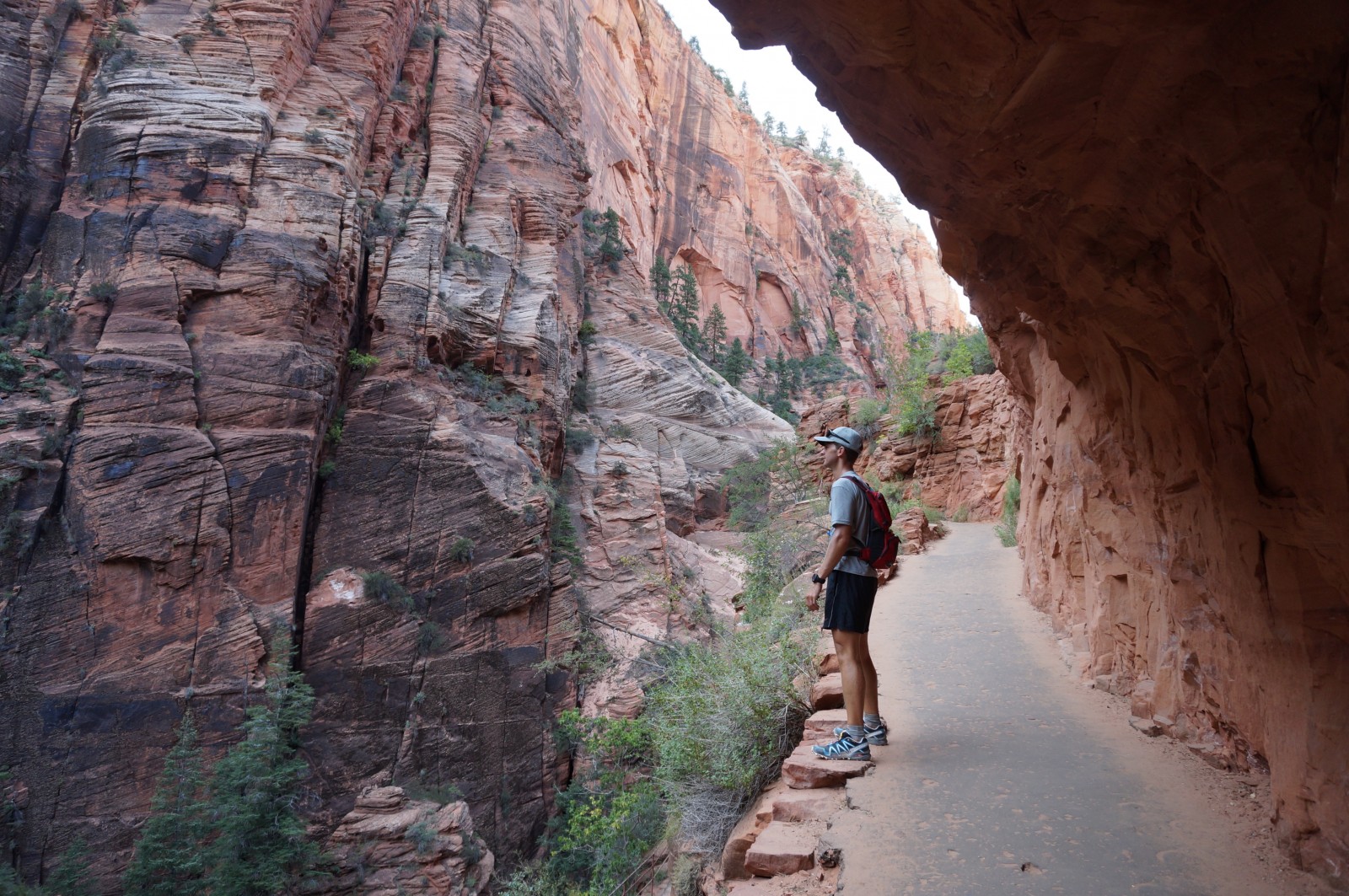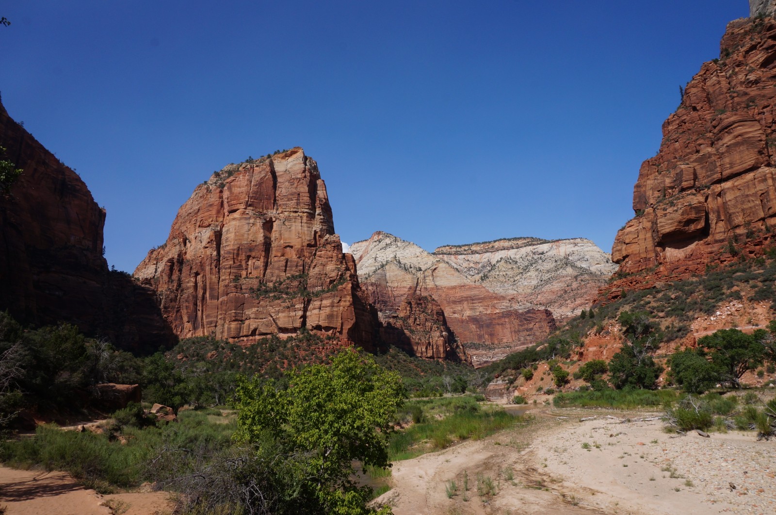 Quant on est arrivé à Zion, on venait de Death Valley ! Première impression alors qu’il est 12h pétantes : “Waouu, il fait bon !” … On reparlera de la température à Death Valley dans un autre billet ! Je reviens à ma première impression de Zion. Le temps est juste magique, le ciel est d’un bleu profond, et du coup, on a hâte de partir faire la randonnée que j’avais sélectionnée : The Angel’s Landing !