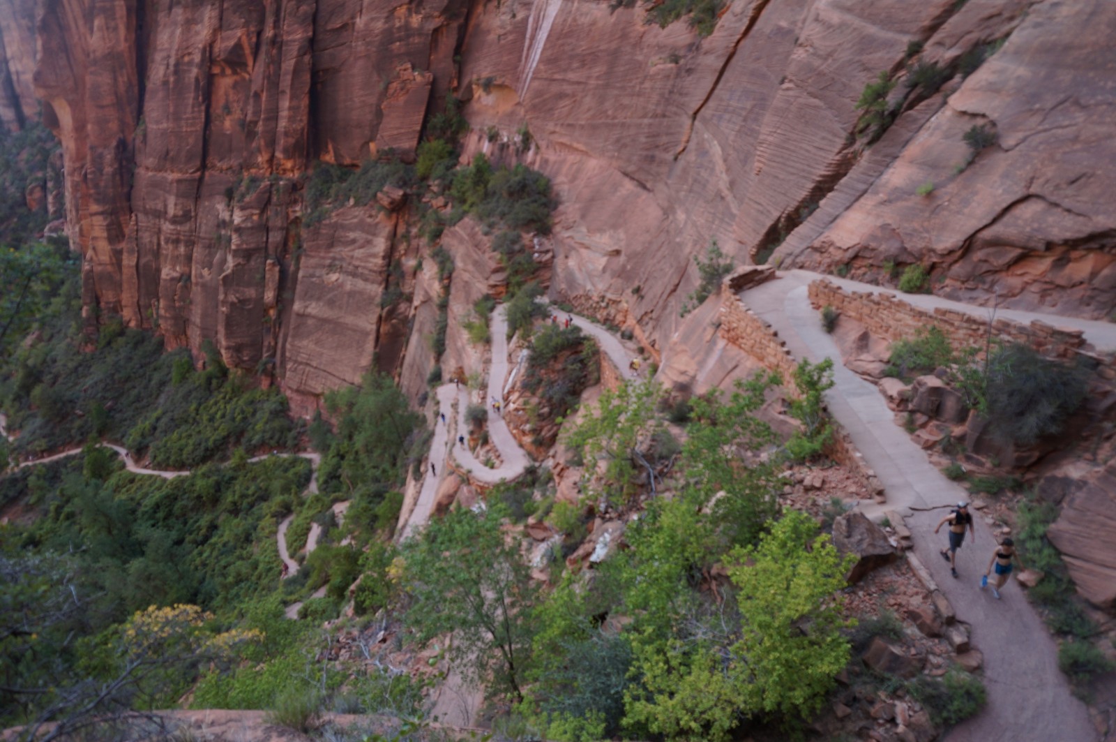 La 2ème phase de la randonnée est bien plus raide, on sent que ça tire dans les mollets et qu’on boit bien plus régulièrement ! Ce sont des lacets minuscules, environ une 15aine, bien bien raides ! Par contre, on arrive à un premier point de vue vraiment canon : Shootout look ! Là, il est possible de s’arrêter !