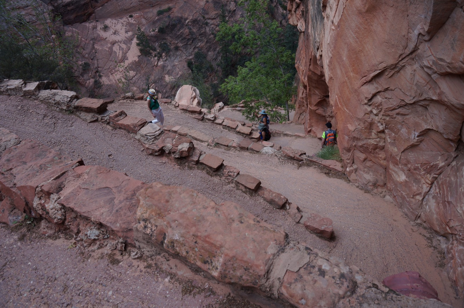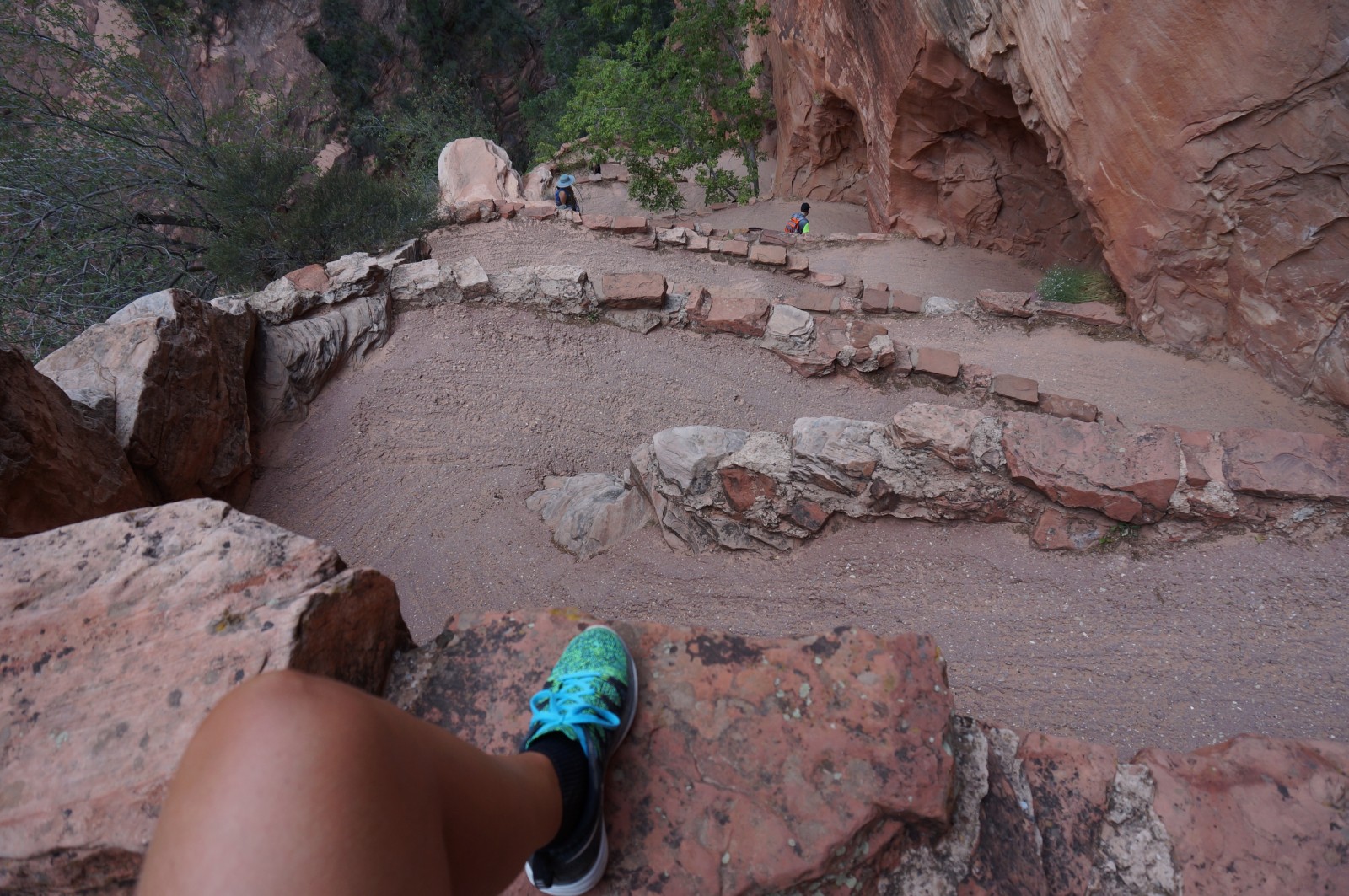 Le départ est plutôt calme, la montée se fait tranquillement et les paysages sont tellement beaux qu’on fait pas mal d’arrêts photos. Puis, quand on voit où on doit aller, on comprend mieux pourquoi elle est décrite comme vertigineuse ! Il y a quand même une belle montée à flanc de falaise avant de passer une zone de faux-plat au milieu du canyon.