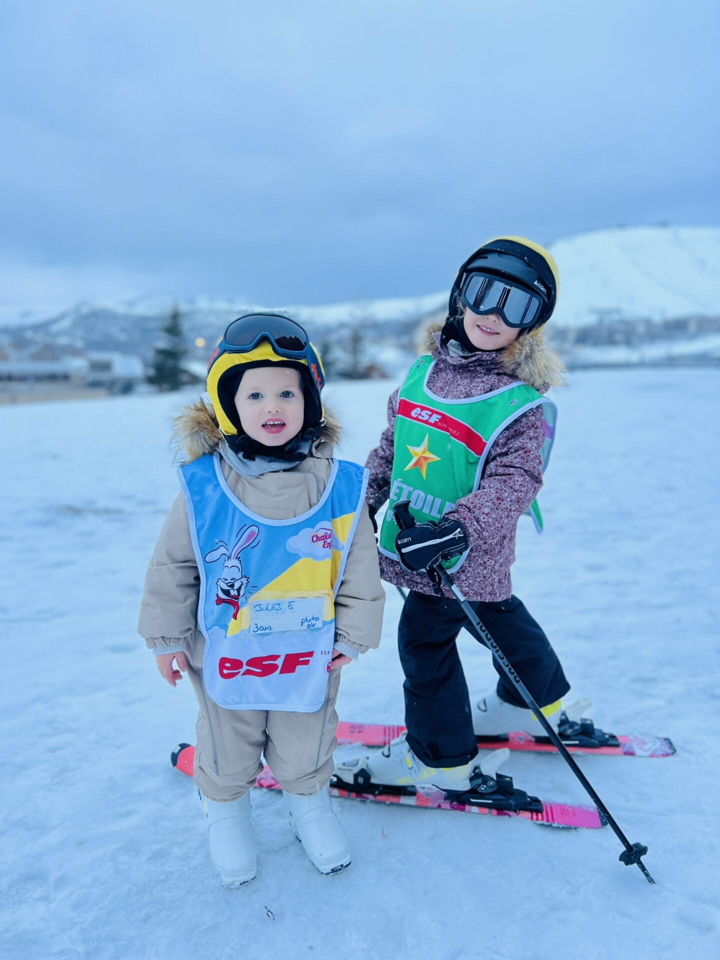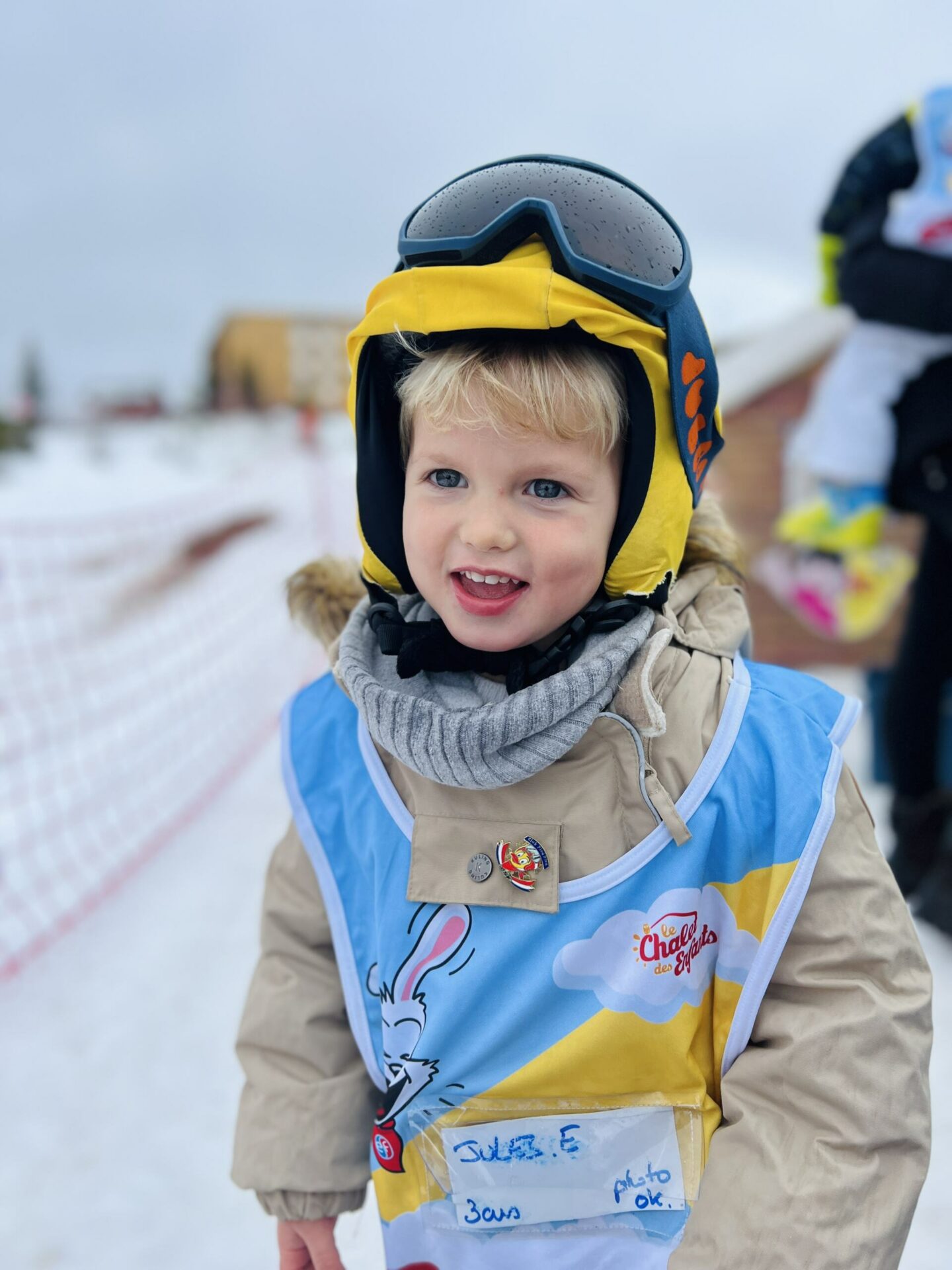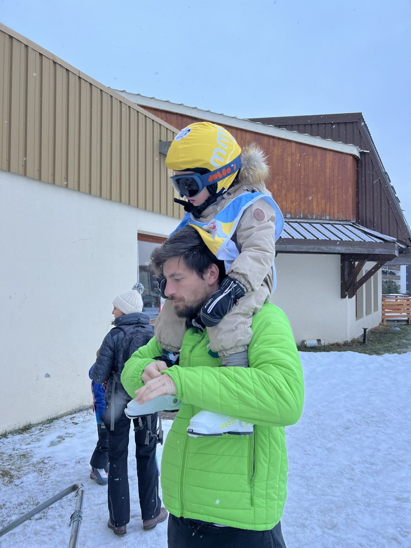J’avais envie de vous faire un focus sur l’ESF de l’Alpe d’Huez car c’était la première fois que les deux enfants y passaient une semaine complète et notamment Jules qui y allait pour la première fois. On les a inscrits uniquement pour les matins. Je trouve que les vacances de décembre sont déjà un peu fatigantes pour eux, donc j’avais envie de préserver la sieste, à la fois parce que Jules dormait toujours 2/3 heures l’après-midi à cet âge, et parce que Louise sortait de la varicelle. Cela a été un super rythme pour des enfants de 3 ans et presque 6 ans. On a rarement vu une école de ski ESF aussi qualitative. Il y a carrément un Chalet des Enfants avec un accueil complet : casiers de rangement des affaires, salle de cantine pour le midi, salle de sieste pour l’après-midi, temps de garderie après les cours de ski avec une super salle de jeux et un goûter. Le Piou-Piou en lui-même est très bien aussi avec 3 espaces pour évoluer, et la piste avec tunnel juste à côté. Je recommande vraiment à fond. Pour Louise, ce fut très bien aussi, ils sont exigeants et très sympas. Louise n’a pas eu sa première étoile le jour du test. C’était un peu juste. Elle est arrivée un jour après les autres, puis il pleuvait des cordes le jour J donc la neige accrochait car il ne faisait pas assez froid pour que ce soit de la neige. Elle a pu repasser le test le lendemain vu qu’on était décalé pour notre jour de départ, et cette fois, ce fut la bonne. Il y a une vraie cérémonie de remise des médailles avec un défilé des enfants, c’est très émouvant. Pour les tous petits aussi, ils sont par groupe et on leur remet la médaille qu’ils peuvent avoir selon leur évolution.