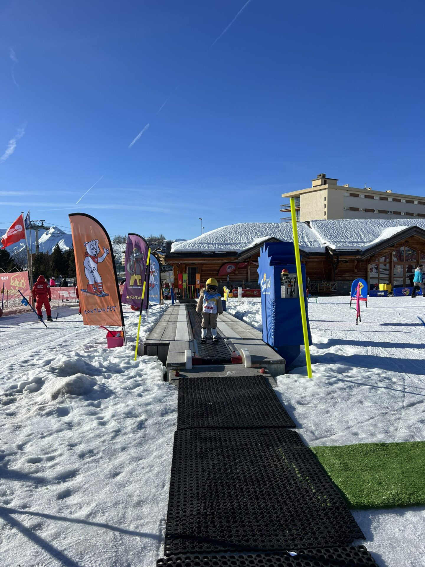 J’aime beaucoup le domaine skiable de l’Alpe d’Huez pour plein de raisons. La première est qu’il est super ensoleillé, donc c’est un vrai bonheur. Ensuite, les remontées sont modernes et elles ont un super débit donc on attend pas longtemps pour partir même à l’heure de pointe du matin. Le domaine est grand et monte jusqu’à 3330m d’altitude au Pic Blanc. Couvrez-vous bien, ça caille ! Vous devez absolument faire la grande piste Sarenne qui fait 16kms et qui est géniale ! Il y a aussi un grand nombre de belles pistes rouges et noires donc forcément, on adore. Cette fois, on avait aussi un regard différent pour choisir notre station car on voulait que les enfants y soient bien. Le bas du domaine est truffé de pistes vertes, c’est bien ensoleillé, il y a beaucoup de remontées mécaniques douces et il y a même deux tapis roulants sous tunnels avec une pente douce. C’était top, mais ce que Louise nous a fait découvrir et a adoré, c’est la piste rose. Sur le coup, on pensait qu’elle s’était trompée, mais non. C’est une piste ludique avec un tunnel en escargot, des grosses bosses à passer, des mascottes au long de la piste.