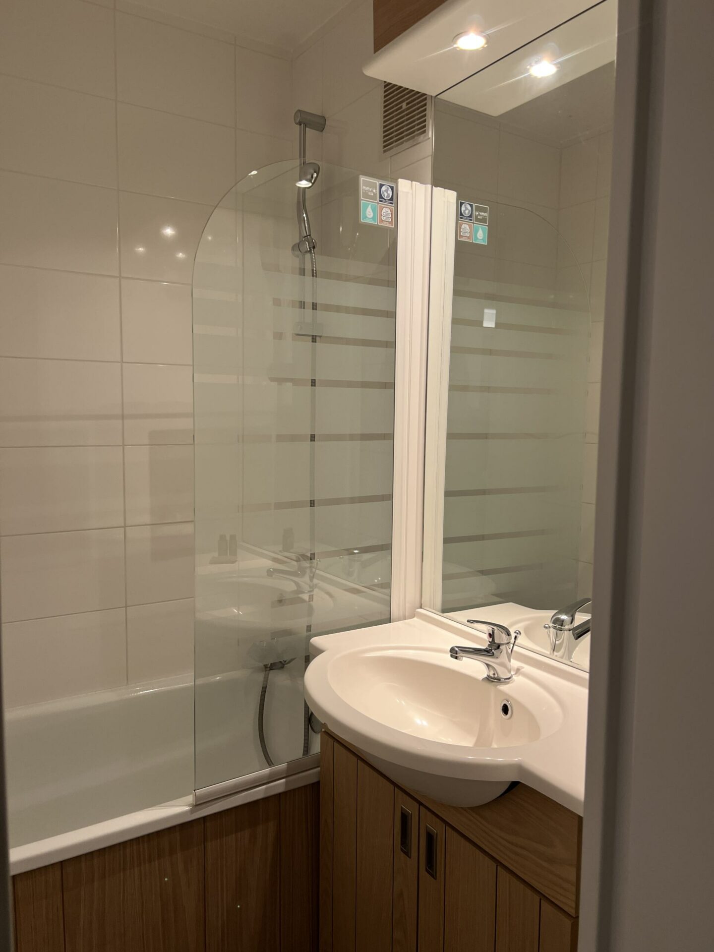 Pour le logement, à quatre personnes, nous avions deux chambres communicantes, chacune avec un grand lit double très confortable, un grand placard aménagé qui permet de tout bien ranger (et retrouver !), un petit coin bureau avec bouilloire, cafetière, jus et biscuits, ainsi une salle de bains avec baignoire et wc séparés, tout à fait suffisante. Nous n’avons pas été gênés par les voisins donc c’est plutôt bien isolé. L’avantage d’un hôtel-club est que le service en chambre est fait durant le séjour.