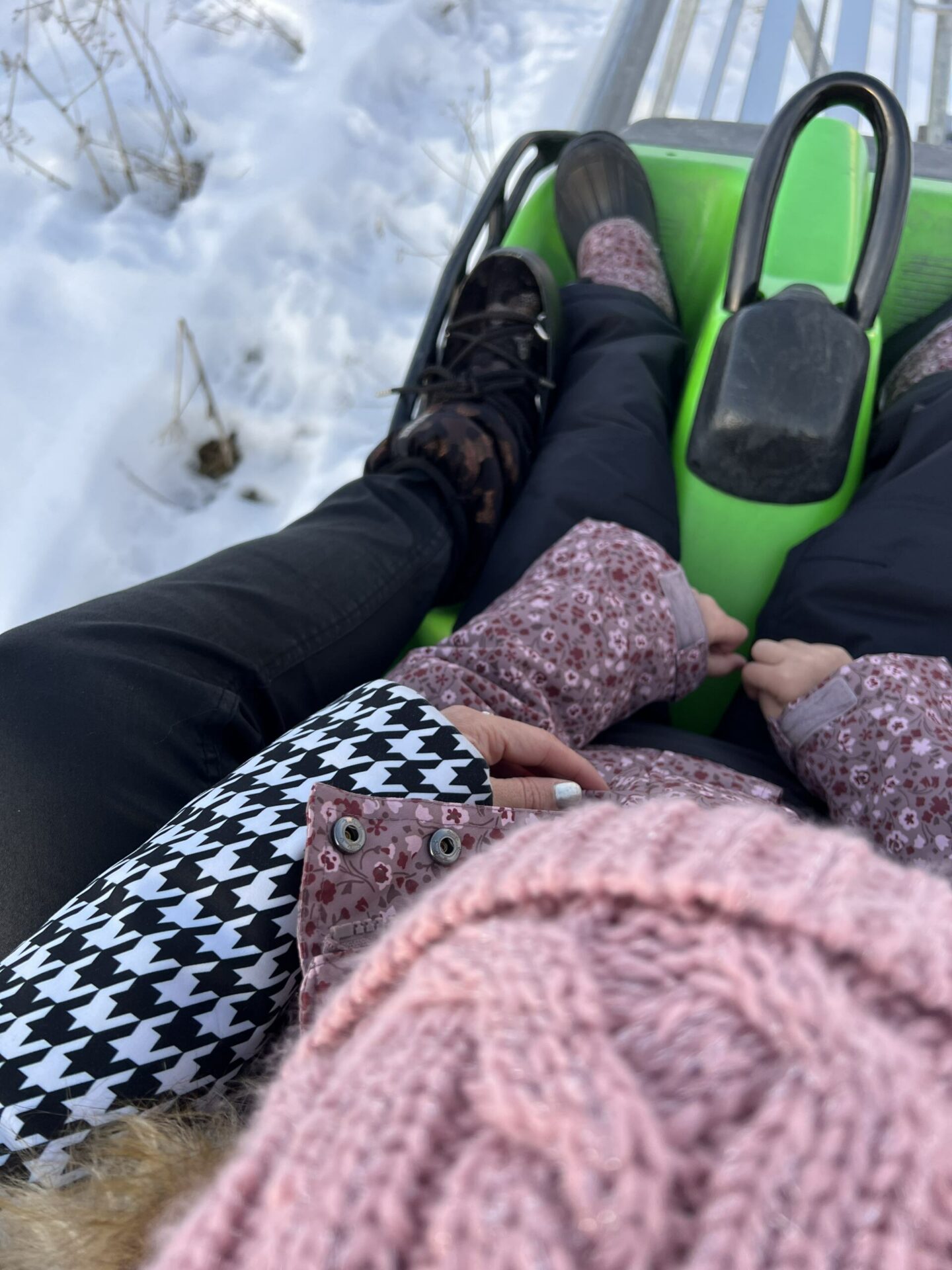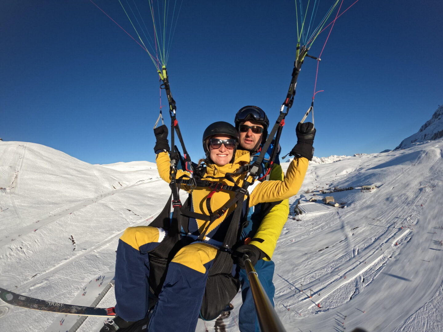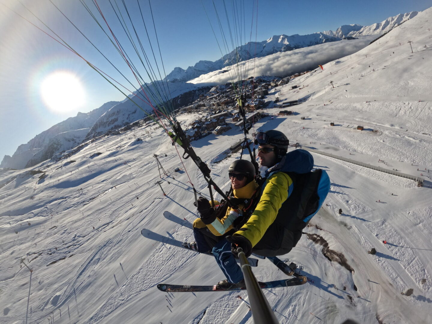Dans la station en elle-même, beaucoup d’activités sont proposées. L’enneigement n’était pas encore super en tout début de saison, donc on a pas pu faire de chiens de traineaux comme on voulait. Par contre, on a fait du parapente à skis avec Stéphane et j’en rêvais depuis que j’avait découvert ça vers 14-15 ans …. à l’Alpe d’Huez justement ! On s’est régalés et le vol découverte d’Akène Fly est à 50€ pour 10-15 minutes. Je trouve ça top, en plus on a une belle vue sur la station, et sur la mer de nuages si il y en a ce jour-là ! On a aussi fait plusieurs fois de la luge sur rails. On adore surtout l’été mais là, c’était encore plus beau au milieu de la neige et parfois au coucher du soleil !