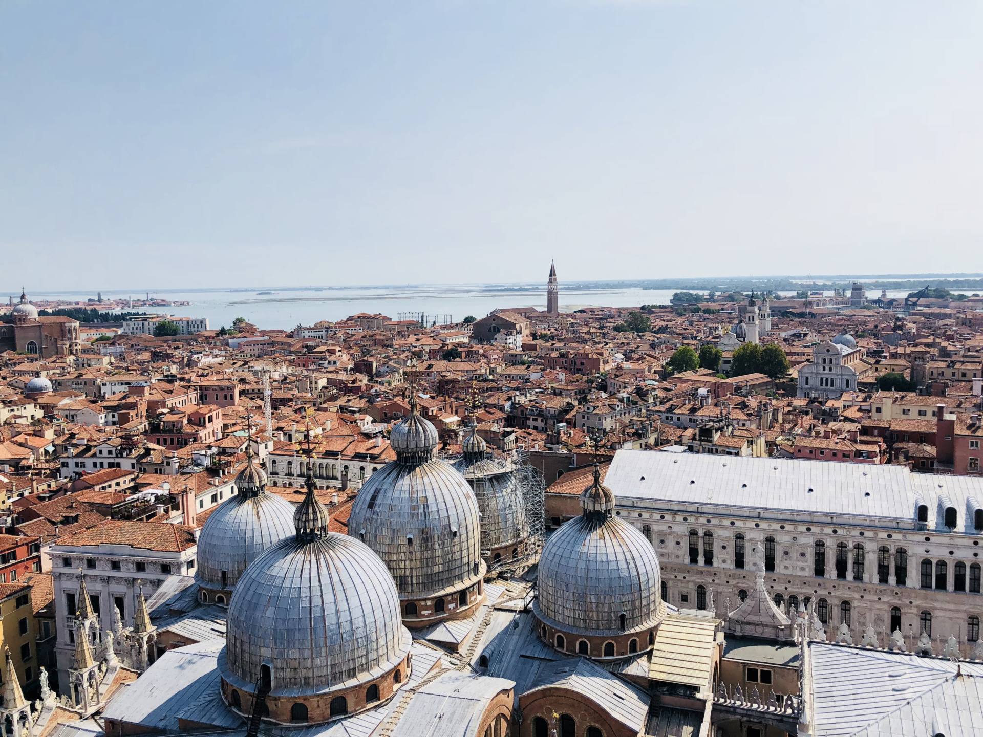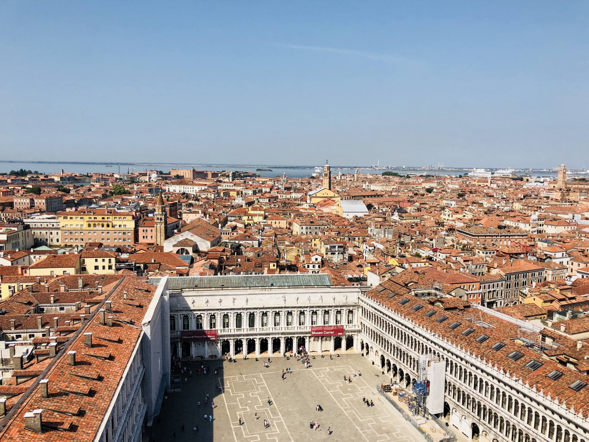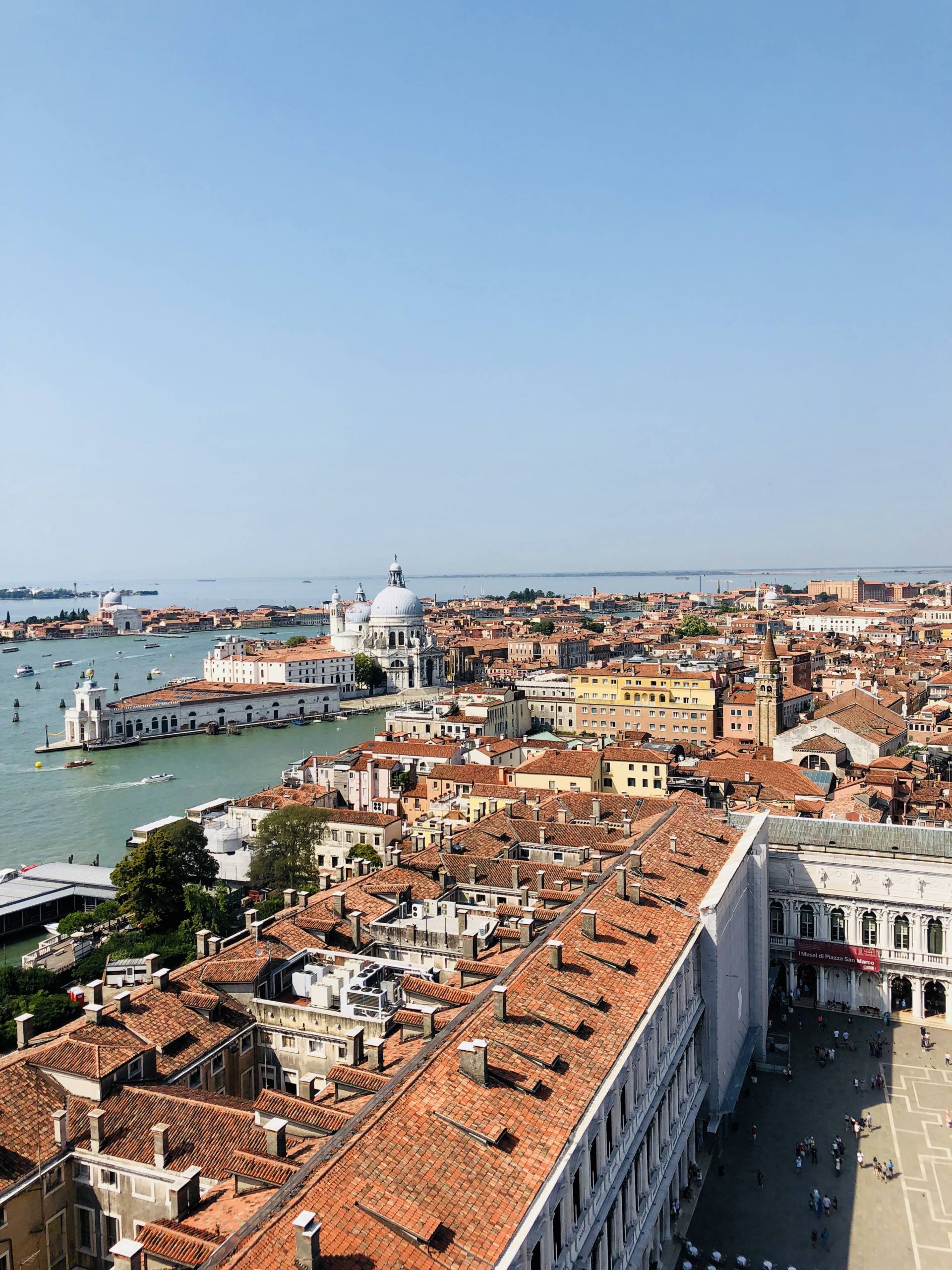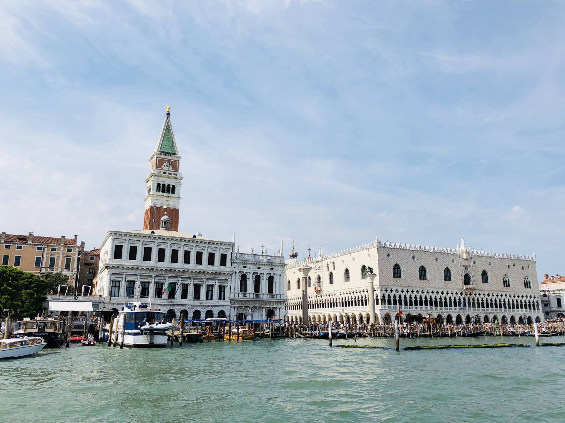 Evidemment, je vous conseille de faire la Place Saint Marc, elle est vraiment superbe avec la basilique et le palais en arrière-plan. Elle est certes bondée mais vers 9h, il n’y a pas grand monde est c’est vraiment agréable. C’est aussi l’heure à laquelle on a choisi de monter tout en haut du Campanile qui est sur la place. Très bon plan, on a pas du tout attendu pour y accéder.De toutes façons, si vous avez une poussette, une fois que vous avez payé, vous passez en priorité. C’est 8€ par personne et la vue d’en haut est IN-CRO-YABLE. Vraiment magnifique. On a eu un coup de coeur pour cette ville, mais alors ce point de vue a fini de nous convaincre. Pour ne pas être à contre jour, allez-y plutôt le matin tôt. De toutes façons, je ne crois pas qu’il soit possible de voir le coucher du soleil le soir car ça ferme trop tôt pour cela. Juste derrière la Place Saint Marc, il y a la Riva Degli Schiavoni, nous l’avons parcourue jusque là où c’était possible. C’est vraiment beau car on a la vue sur l’autre rive, celle du quartier de Dorsoduro, sur les entrepôts de la pointe de la Douane et sur l’Eglise de La Salute. C’est vraiment magnifique. Evidemment, ce quai est bondé car c’est très touristique, mais ça vaut tout de même le coup, rien ne sert de s’éterniser par contre. D’ailleurs, cette belle église, on la voit bien depuis le point de vue dont je vous ai parlé juste avant, c’est superbe ! Vous passerez forcément devant Pont des Soupirs. Pour la petite histoire, c’est le pont qu’empruntaient les prisonniers qui passaient du tribunal à leur cellule. C’est la dernière fois qu’ils apercevaient alors la lagune, d’où “les soupirs”. N’hésitez pas à remonter, à vous perdre dans les ruelles en allant jusqu’à Fondamente Nove, la rive de l’autre côté, c’est tellement agréable et c’est un musée à ciel ouvert. Entre les canaux, les gondoles, les bâtiments, les ponts, les place, les nombreuses églises, tout est superbe !