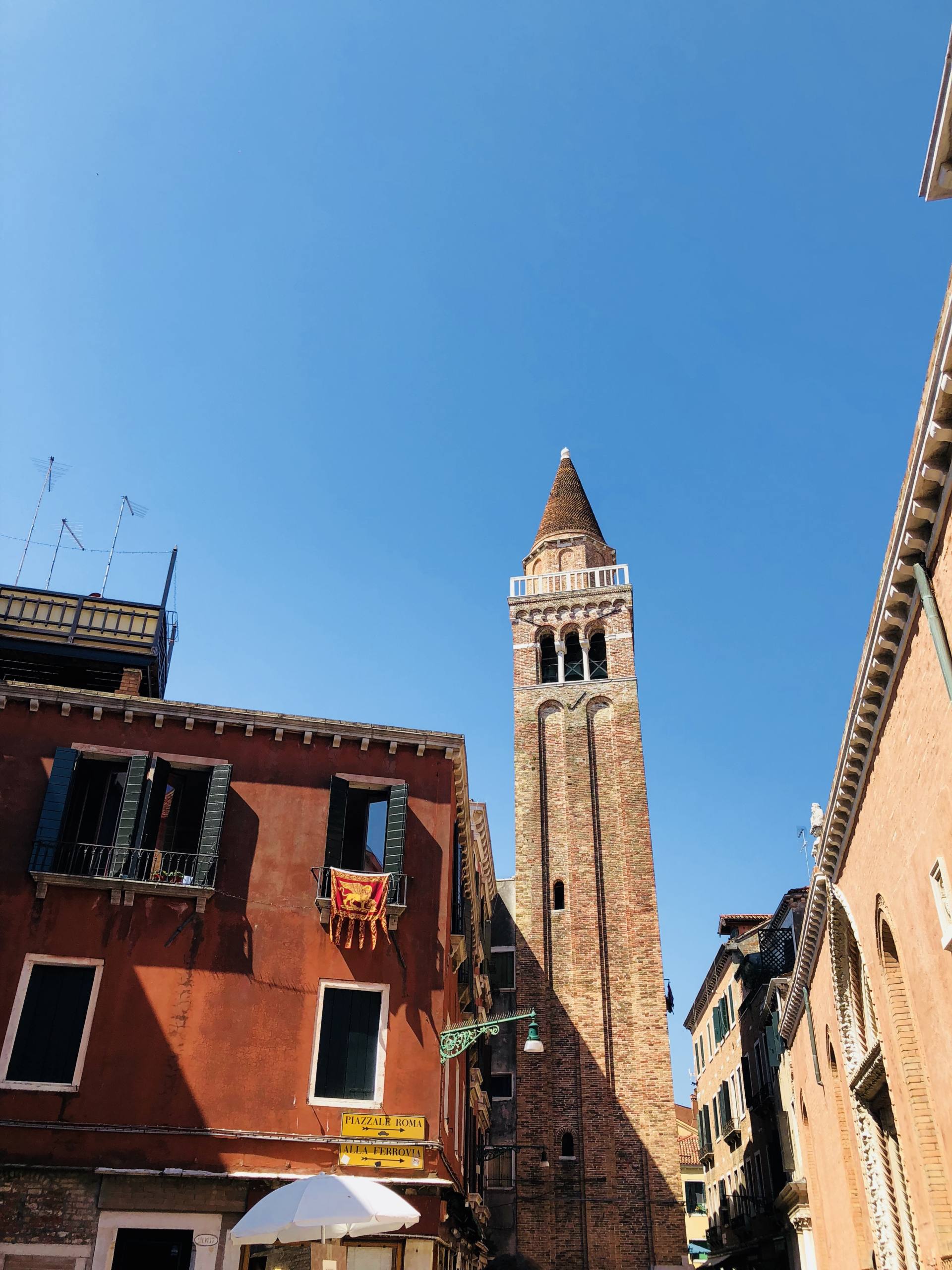 En partant vers l’Est de la Place Saint Marc, il y a le quartier du Château. On l’a peu expérimenté mais c’est assez calme et sympa.On a bien aimé apercevoir une tour penchée blanche de San Stefano. On ne s’est pas éternisé dans ce quartier là mais on a déambulé dans les ruelles et on a mangé dans un restaurant de ce quartier pour fêter nos 5 ans de mariage ! Vous pouvez retrouver cette bonne adresse ici ! C’est un quartier plutôt populaire et très sympa.