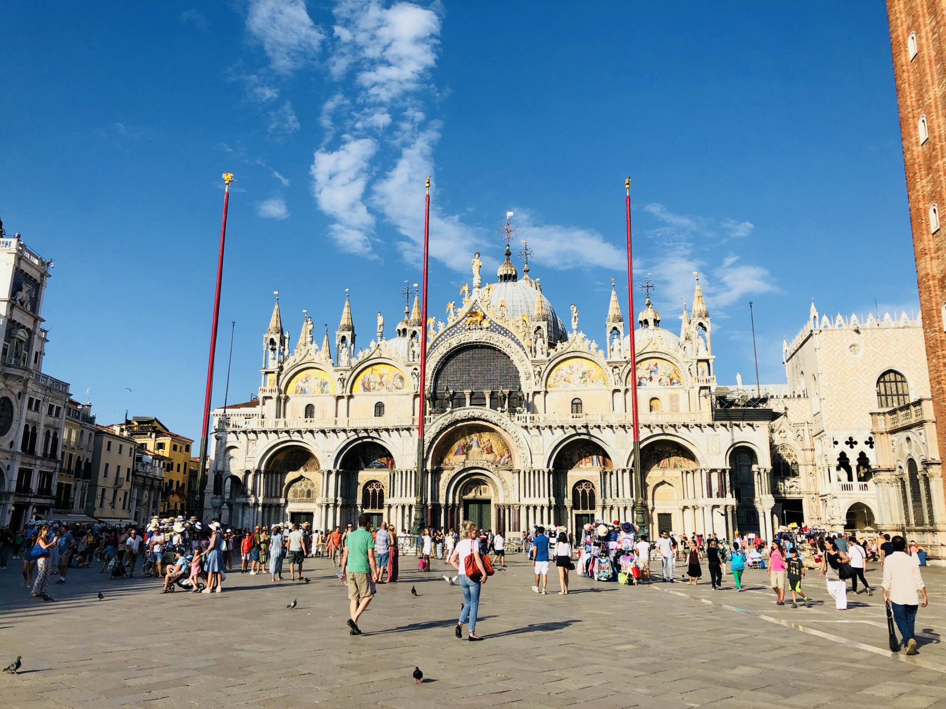 Tout le monde nous avait déconseillé juillet-août à cause de la chaleur. Oui, il a fait chaud, mais pas plus que chez nous ! On nous avait aussi dit qu’on aurait trop de monde et que ce ne serait pas agréable. Et bien évidemment, sur la Place Saint Marc, c’était bondé, mais une fois sortis de là, on était surpris de ne pas voir tant de monde que cela, c’était très agréable, et loin de ce qu’on avait pu nous dire. A mon avis, le mieux, c’est avril-mai-juin-septembre-octobre tout de même. Mais c’est largement faisable en juillet !