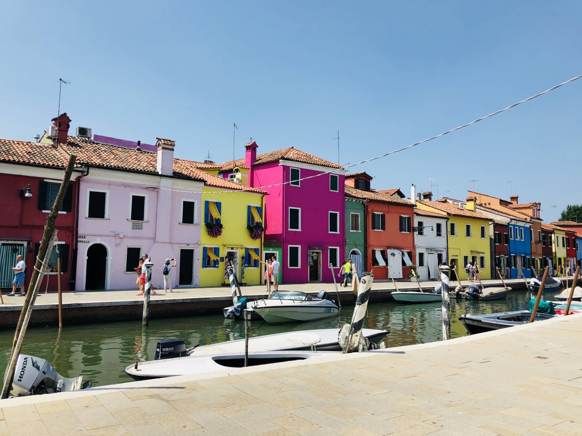 On nous avait beaucoup parlé de Murano et de Burano. Finalement, on a remarqué que ceux n’ayant fait que Murano nous la recommandait, mais que ceux ayant fait les deux nous incitaient plutôt à faire Burano. Alors vu qu’on avait pas le temps d’en faire 2, on a opté pour Burano ! Quel spectacle ! C’est minuscule, on fait le tour en 15-20 minutes maximum, mais c’est tellement mignon, 2-3 canaux, des petites boutiques, quelques restaurants et des petits ponts. Les bâtiments sont ultra colorés, il y a de jolies petites places et même de la verdure le long d’un quai. Le tour est vite fait mais ça vaut le détour. On y a passé une demi-journée : balade, déjeuner, petite glace, quelques photos évidemment ! On gardera un souvenir de Louise qui mangeait le pain qu’on donnait aux pigeons, un joli moment immortalisé en vidéo ici !