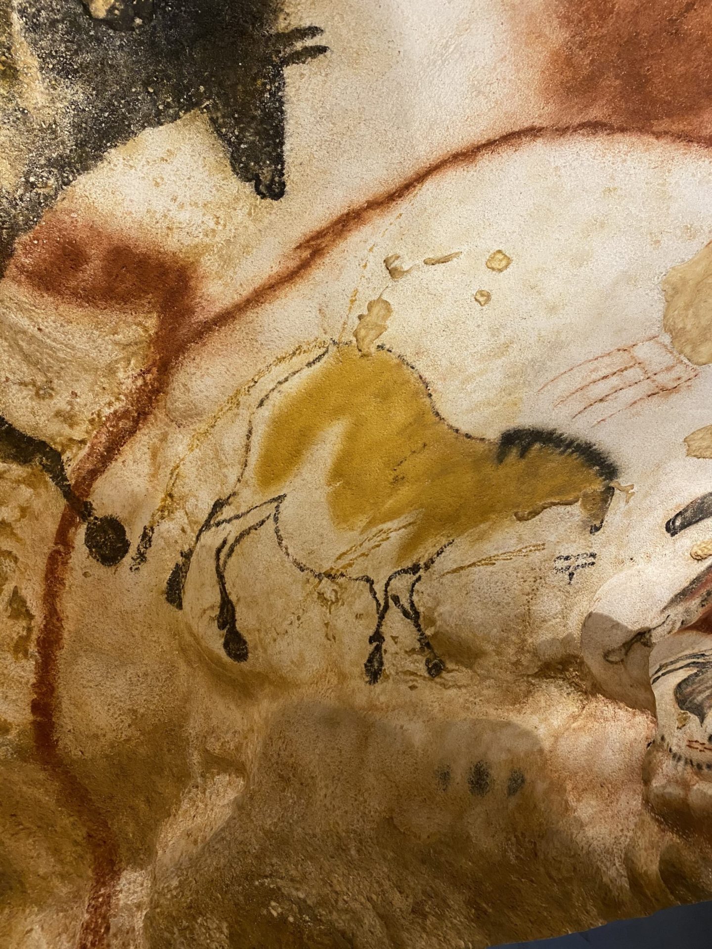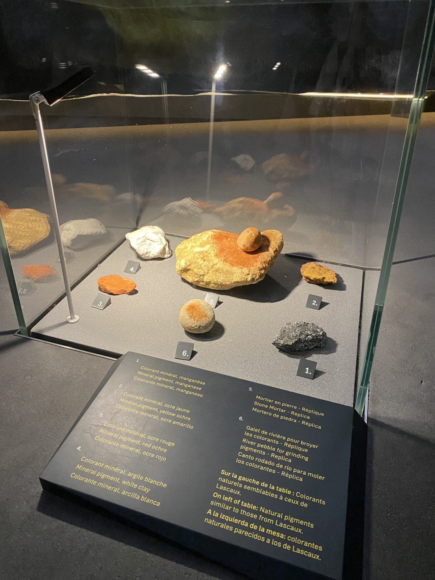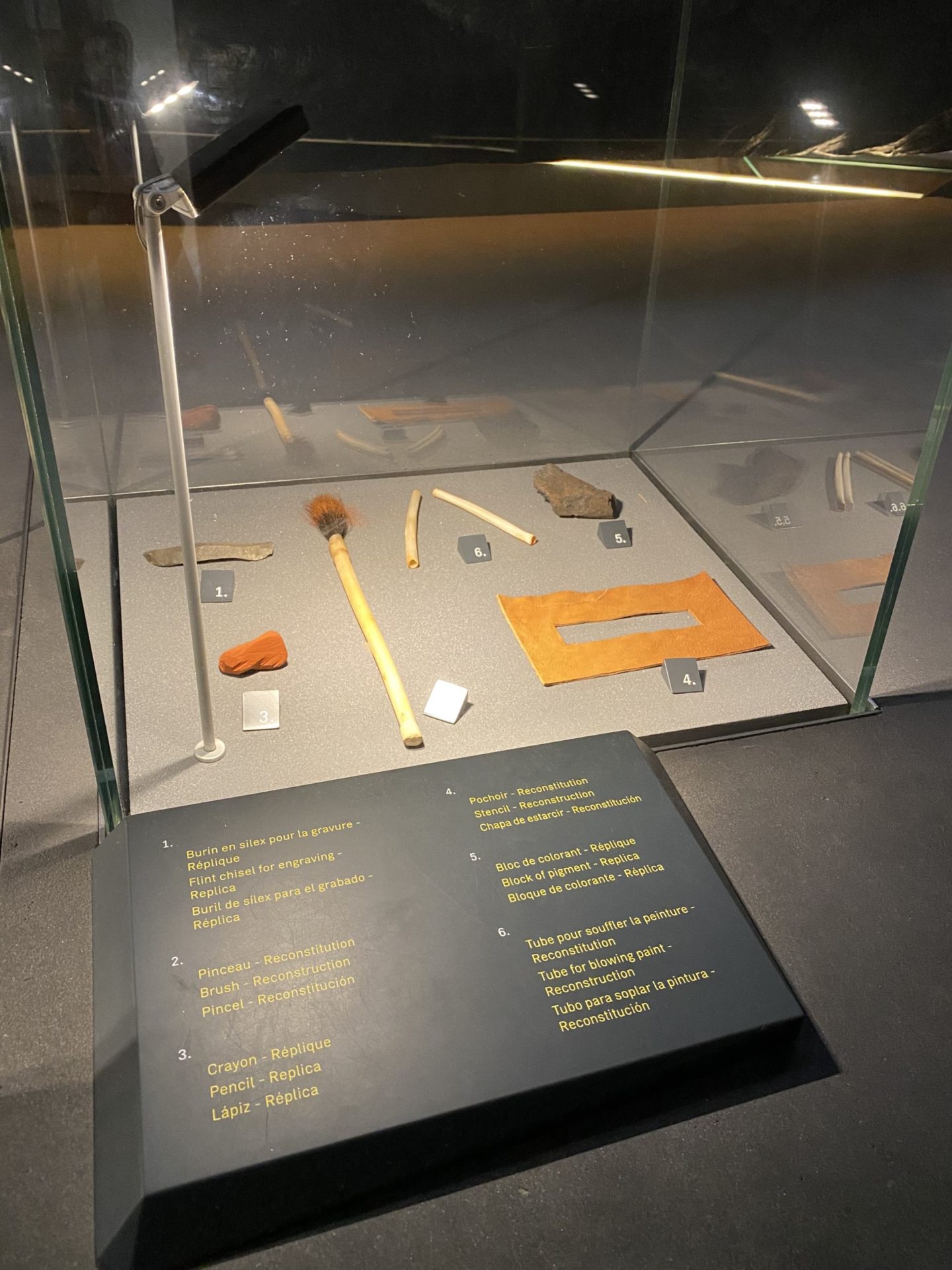 La Grotte de Lascaux a ainsi fermé ses portes pour préserver ce qui pouvait encore l’être. De la mousse avait commencé à se développer sur les murs puisque l’oxygène entrait à nouveau dans la Grotte, beaucoup d’outils/objets avaient été volés, les dessins réalisés avec des pigments naturels commençaient à s’altérer. Aujourd’hui, la Grotte est totalement fermée. Seuls des chercheurs et historiens peuvent y accéder. Même certains présidents de la République se sont vus un accès refusé. C’est donc un fac simile que l’on peut visiter à Montignac. La visite guidée dure environ 1h30 et nous l’avons faite avec une jeune femme, Victoire, passionnée et très drôle, c’était parfait. La visite commence avec une vidéo qui montre la région à l’époque de ces hommes, beaucoup plus froide qu’elle ne l’est aujourd’hui, Puis elle continue avec la reproduction à l’identique des salles de la Grotte, où l’on peut découvrir les dessins et sculptures parfaitement reproduits. C’est impressionnant le niveau de détail des illustrations, un travail d’exception. Ensuite, une autre partie du musée reproduit les découvertes faites dans des cavités comme le fond d’un puits de 7m où des dessins ont été retrouvés. Puis on peut voir les outils, les pinceaux, les accessoires qu’ils utilisaient. Ce sont aussi des reproductions car la Grotte a malheureusement été pillée pendant ses années de tourisme de masse. C’est d’ailleurs pour cela qu’il y a pas mal de collectionneurs privés dans les environs.