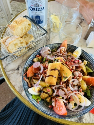 - La piazza – Bastia : Juste devant le port donc parfait avant de prendre le bateau. On. s’attend à du basique touristique, puis non ! Une carte sympa, bistrot à tendance italienne. Burger très bon, salades très copieuses !