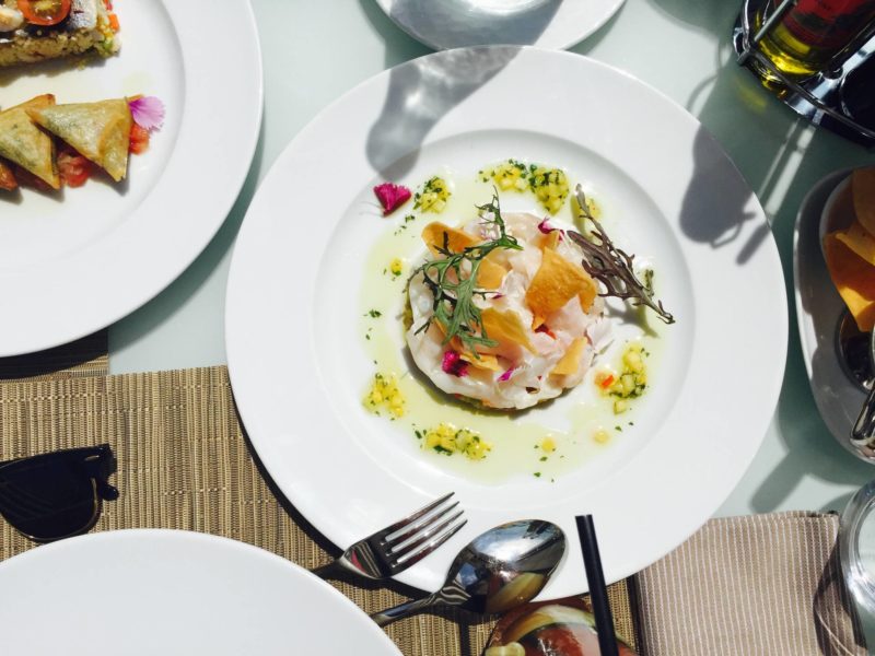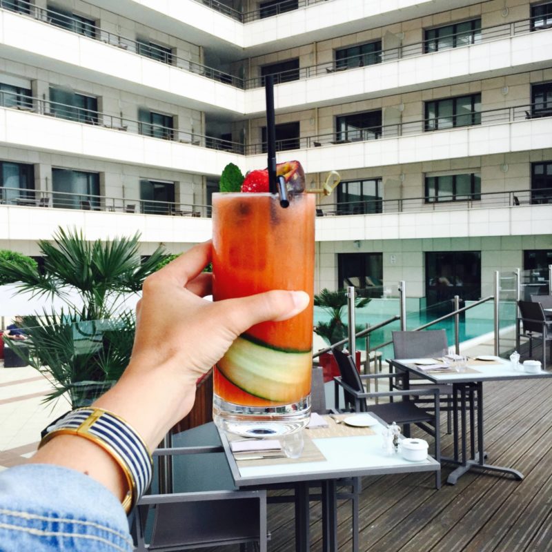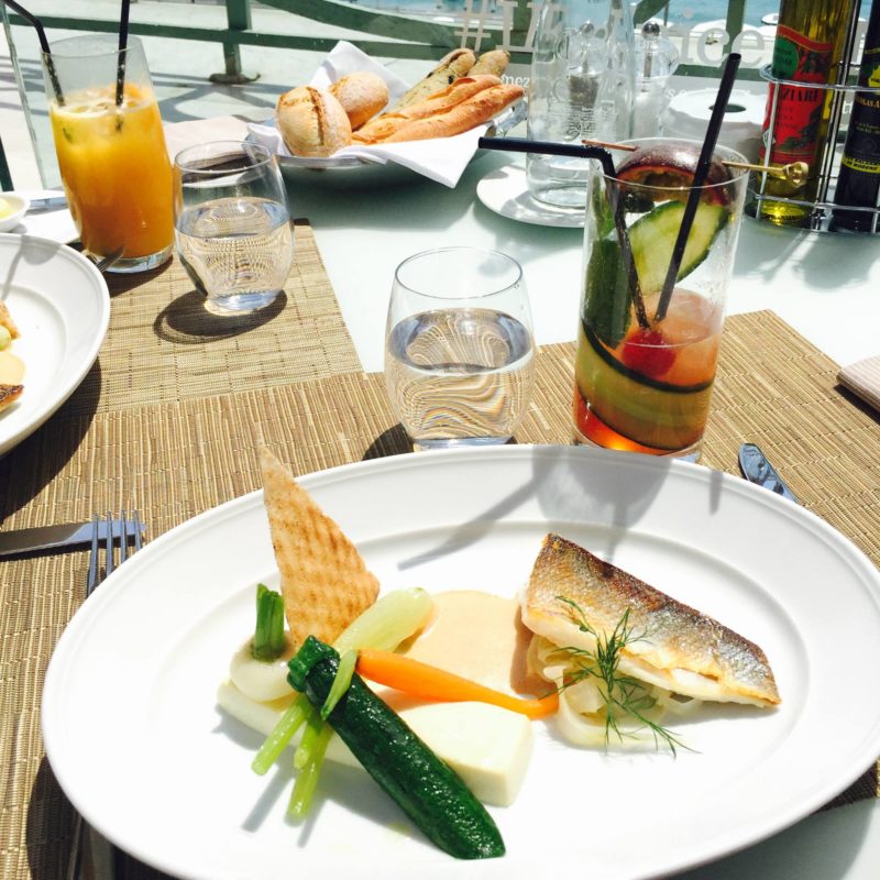 Les hôtels, et particulièrement le Hyatt Regency Nice Palais de la Méditerranée, c’est vraiment l’endroit auquel on ne pense pas pour sortir déjeuner ou dîner. On croit toujours que l’ambiance est glaciale, on a souvent peur de ne pas très bien manger ou tout simplement, on ose pas car on est pas client de l’hôtel. Allez, hop, on oublie tout ça et je vous emmène avec moi dans ce restaurant tenu par le Chef Cyril Veire. Pour commencer, vu qu’il fait beau, on va s’installer évidemment en terrasse et en première ligne pour admirer la vue à couper le souffle, c’est-à-dire sur la promenade des anglais et la mer. La carte des cocktails à peine ouverte, on sent que le bar tender a de l’expérience ! Les mélanges de saveurs sont atypiques et donnent tous très envie. Finalement, je choisis de dire au barman ce que j’aime comme goûts, saveurs et sensations pour qu’il me fasse un cocktail sur mesure. Et évidemment, il est divin ! Il faut dire qu’il a vu juste car il a mis une touche de cerise qui est mon fruit préféré. Je vous avais déjà parlé de mon addiction pour un cocktail du Mama Shelter de Los Angeles !
