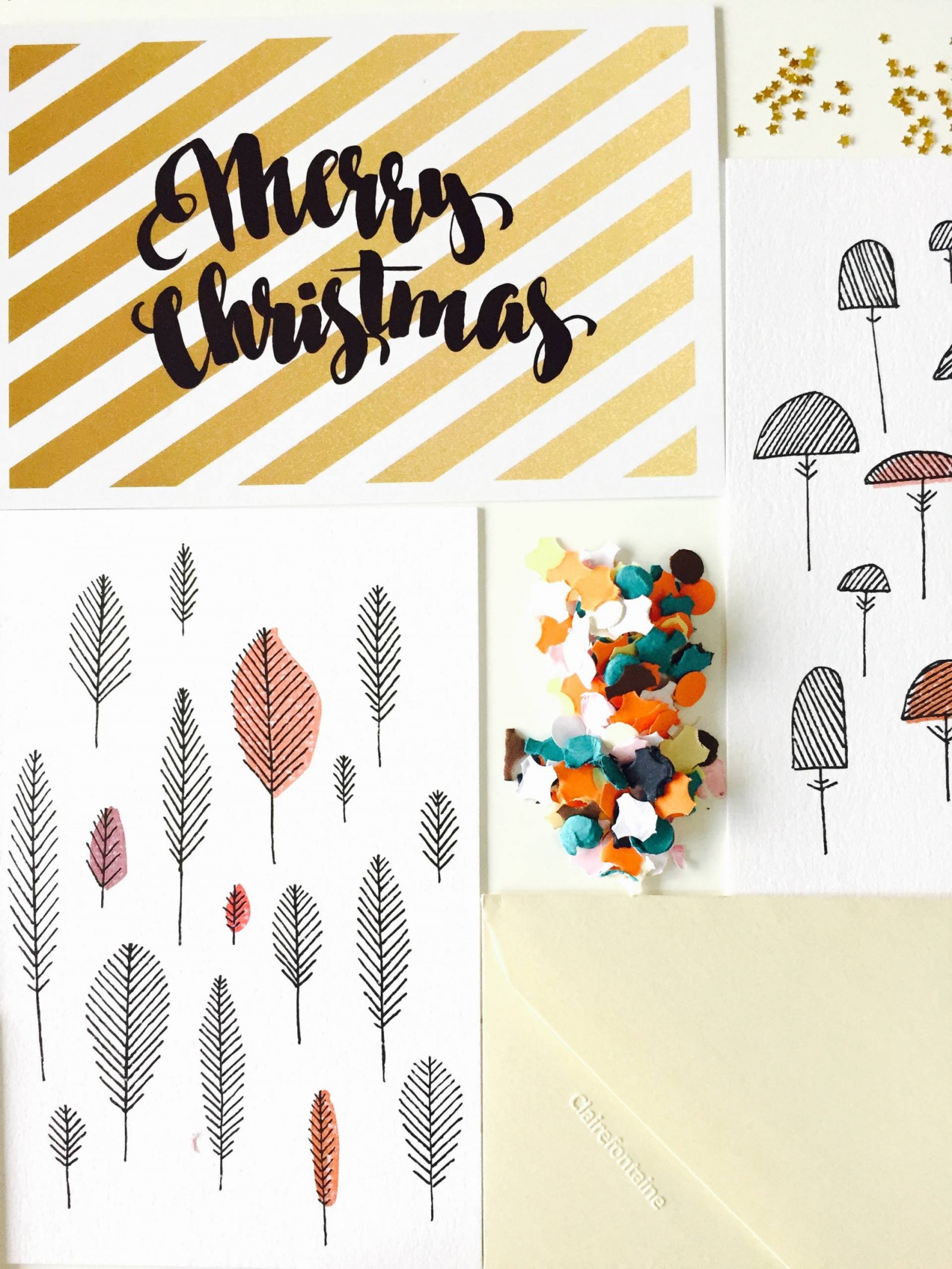 Du coup, voici la liste de ce que j’ai utilisé pour faire ces cartes de Noël :