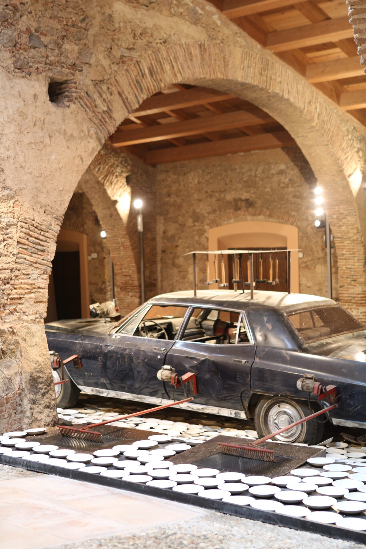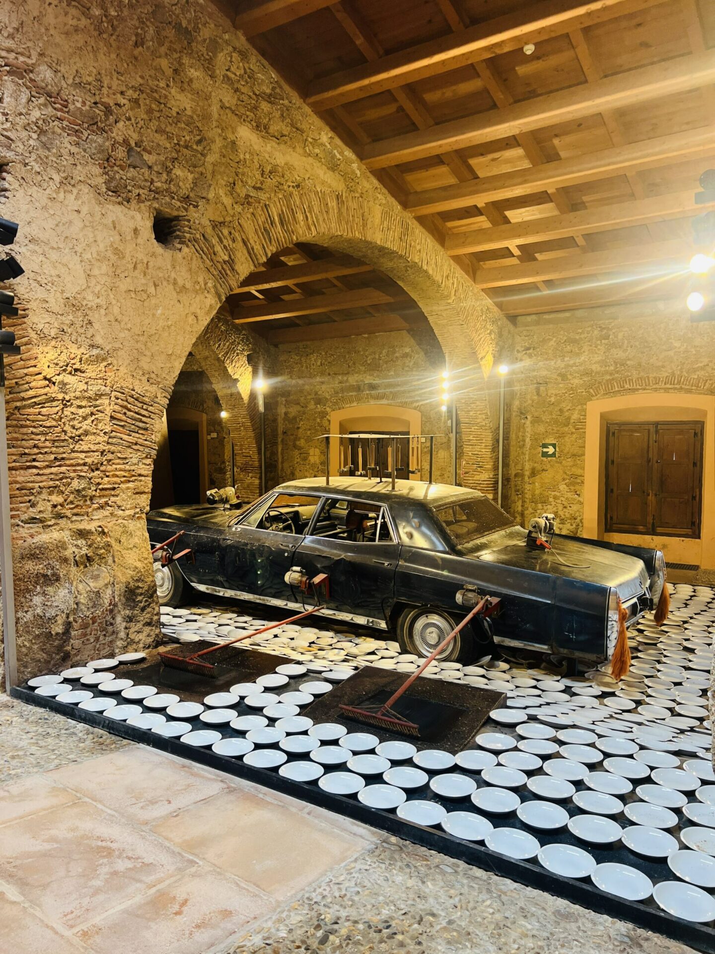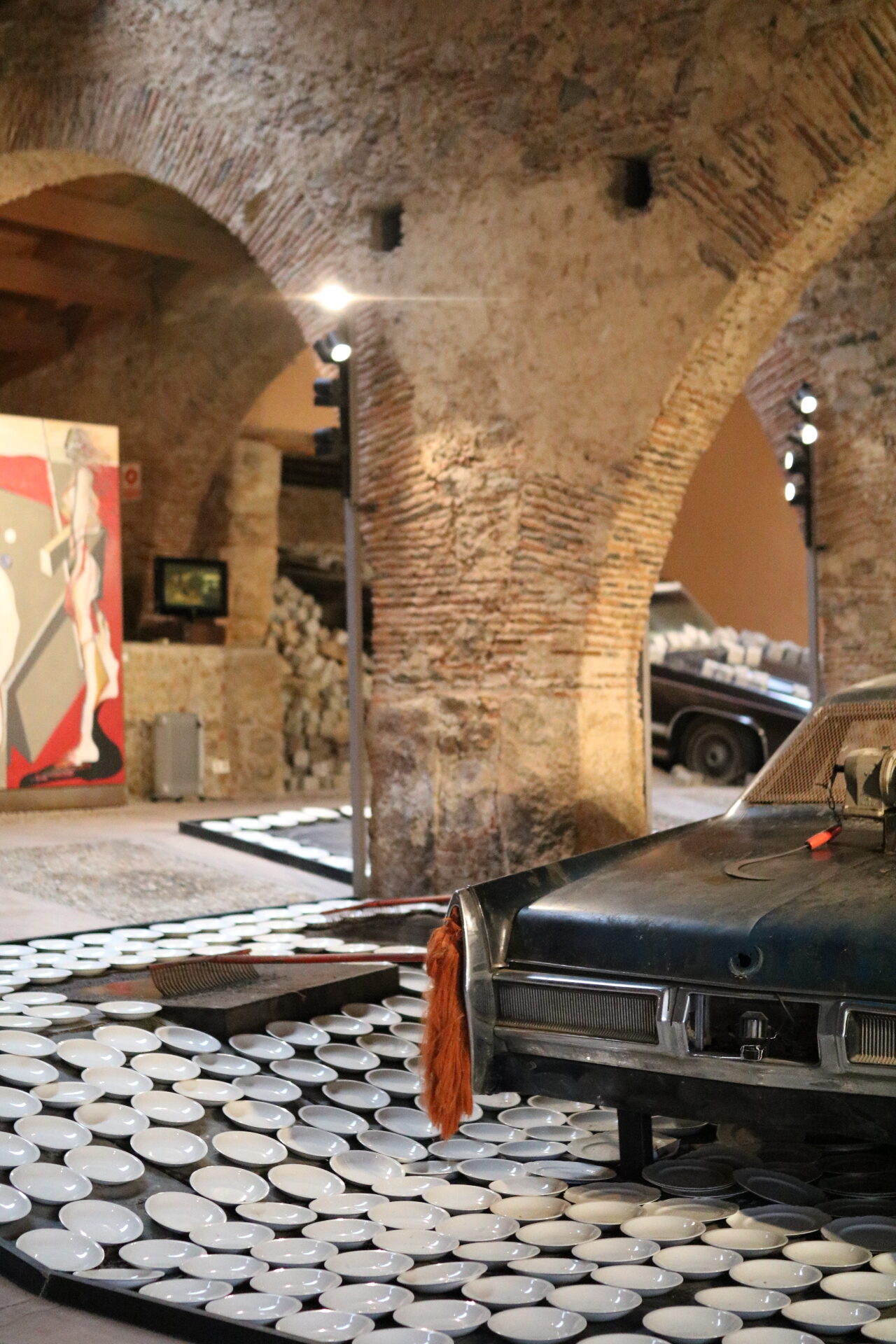 C’est dans ce coin-là que le Museo Vostell s’est installé dans une ancienne manufacture de laine, en pleine nature, au coeur de l’Estrémadure. Un superbe bâtiment au sein duquel on retrouve les oeuvres emblématiques de l’artiste comme le mur de motos de la garde personnelle de Franco. Il les a empilées tel un rideau pour dénoncer la dictature et pour montrer que tout comme dans un opéra, un jour, le rideau se ferme et cela s’arrête. L’autre oeuvre qui m’a beaucoup interpellée est une immense toile rouge sang qui illustre l’après seconde guerre mondiale avec deux côtés séparés par un mur. Sur le mur, une porte de voiture symbolise l’ouverture attendue et le mur interrompu signifie l’espoir. Sur chaque côté se trouve une télé qui montre ce qui était diffusé simultanément en RFA et en RDA. C’est le tout premier artiste à intégrer les écrans de télévision dans ses oeuvres. A l’arrière se trouve une porte pour accéder à la plus belle oeuvre selon lui, la nature. On sort et on arrive face à un joli panorama. Entrée : 3€.