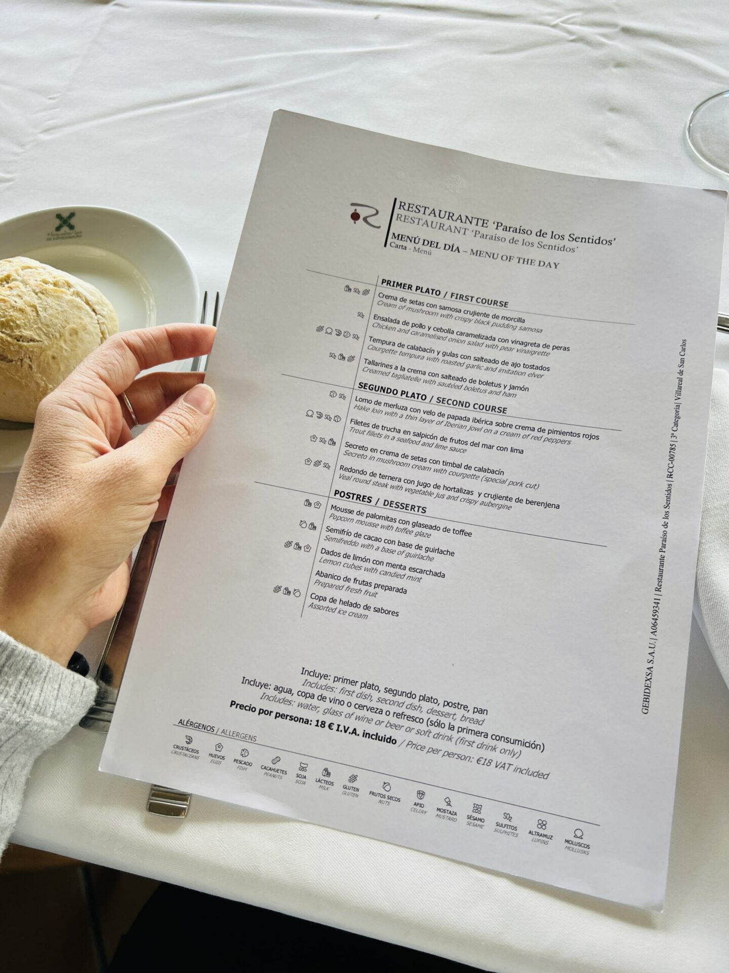 Pour déjeuner à proximité du parc national, vous pouvez aller chez Paraiso de Los Sentidos. Le menu du jour est composé de 4 entrées, 4 plats et 4 desserts au choix. Il est à 18€, morceau de pain et une boisson incluse (vin, eau, bière, soda). Imbattable, c’est bon, et copieux !