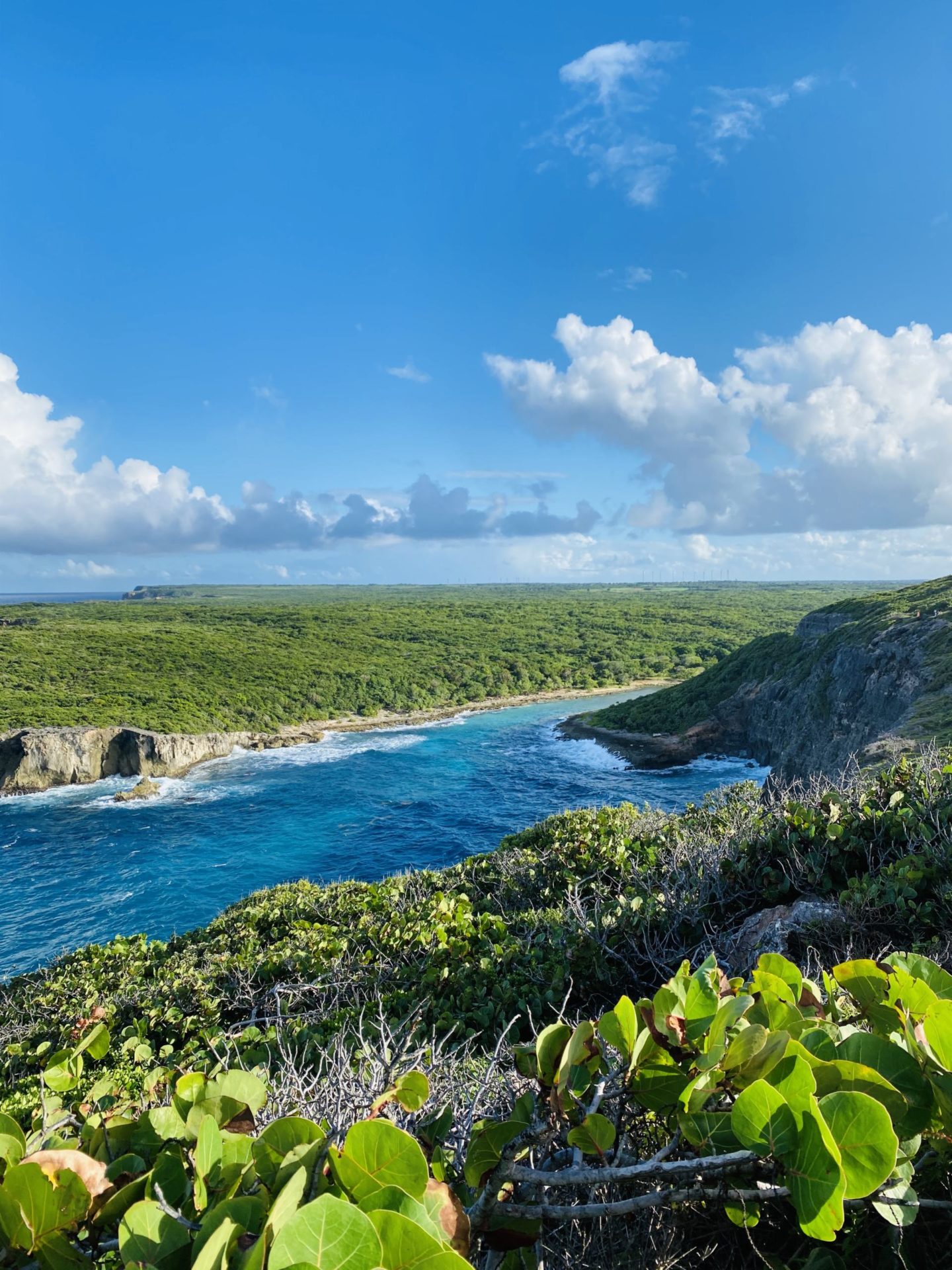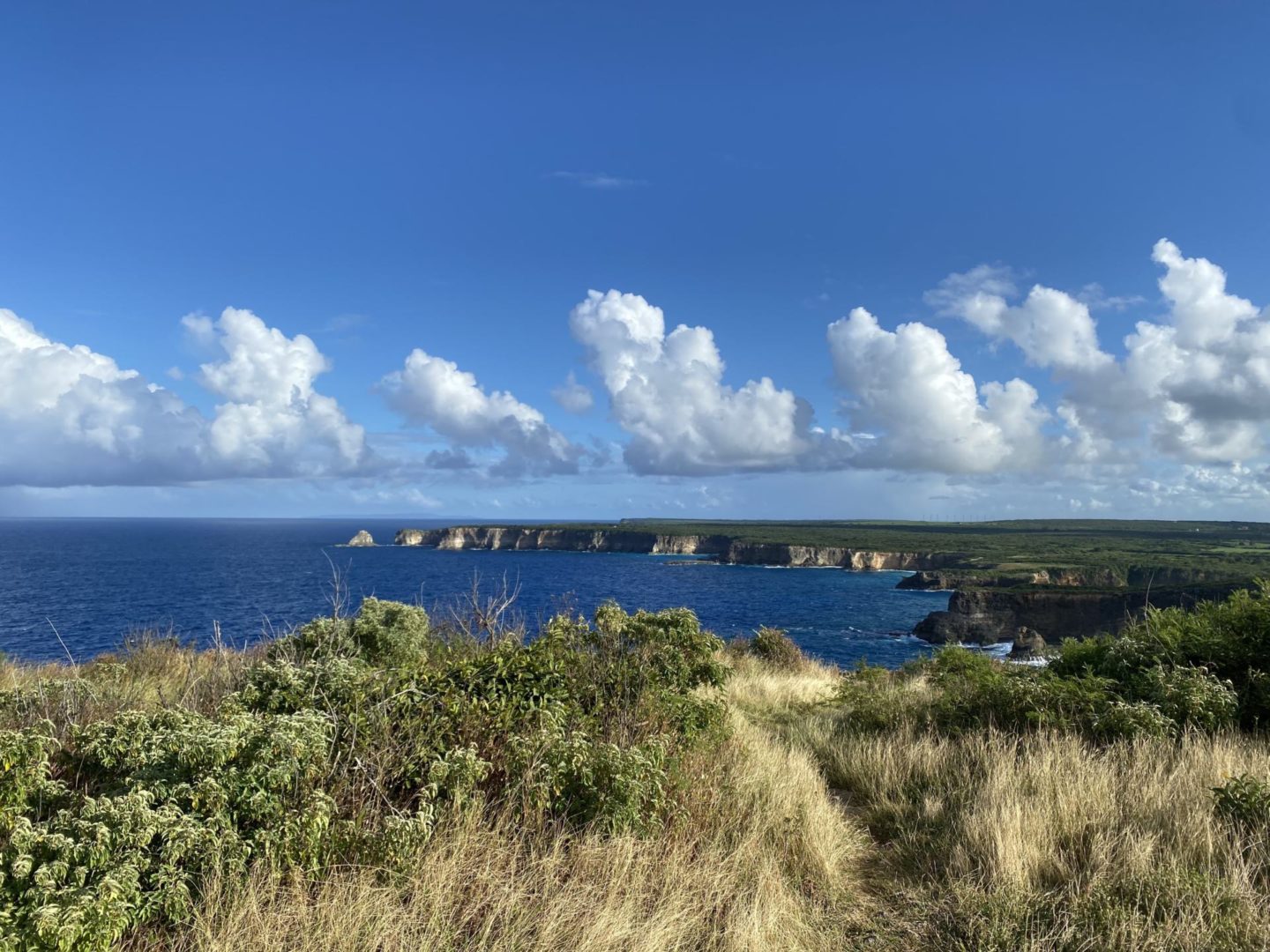 Je vous recommande de monter vraiment tout au nord pour faire une petite randonnée à la Pointe de la Grande Vigie. 30-40 minutes pour voir un beau panorama sur des falaises vertigineuses ! En redescendant par l’est, arrêtez-vous voir Porte d’Enfer, une langue d’eau turquoise qui rentre dans les terres et où les vagues se fracassent sur les falaises autour. Vraiment beau ! Nous, elle n’était pas totalement turquoise car il y avait beaucoup de sargassesde ce côté-là de l’île. Toujours en redescendant, j’aurais voulu faire Le Morne mais la pluie tropicale s’est invitée donc on a tracé. Le cimetière vaut apparemment le détour !