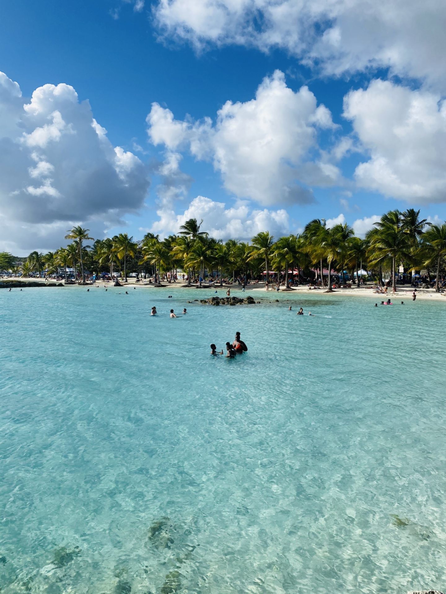 Je vous conseille aussi la Plage du Bourg. C’est la jolie découverte de Sainte-Anne. Autant tout le monde entend parler de la célèbre plage de la Caravelle jonchée de cocotiers, autant la petite plage du bourg à Sainte-Anne mériterait une plus grande renommée. Elle se trouve au coeur de Sainte-Anne. Deux belles anses turquoises, des cocotiers, une belle jetée et l’eau cristalline. C’est un spot qu’on a adoré où les locaux se mêlent aux retraités qui profitent de l’hiver au soleil et aux vacanciers en famille ! Vous l’avez repérée et adorée sur mes stories Instagram, alors je me devais de l’ajouter dans cet article !