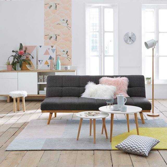 Vous le savez, la décoration sera d’inspiration scandinave. Au delà du style, c’est aussi leur logique que j’adore. Savoir optimiser les espaces, favoriser la luminosité, donner de l’importance à chaque objet et créer un intérieur pour recevoir, pour se faire plaisir. La pièce sera de couleur blanche, c’est certain, mais je ne sais toujours pas si il y aura un mur de couleur ou non. Il va falloir que je me décide mais j’ai toujours quelque chose qui me fait douter ! Le sol est gris car nous n’avons pas pu mettre de parquet, je vais donc réintégrer le bois via les meubles pour redonner un coup de naturel et d’authenticité. Je pense qu’il y aura un tapis blanc ou blanc et noir, d’inspiration berbère, un canapé gris clair et des coussins qui redonnent un peu de contraste avec un peu de couleur bleu canard ou du noir. Pour la table basse, j’ai eu un coup de coeur pour un duo de tables basses bois et marbre que j’aime beaucoup mais j’hésite encore car l’ensemble est assez grand et j’ai peur que ça prenne trop de place. En face, il faut que je trouve un meuble sur lequel on posera la télévision. J’ai envie d’un meuble plutôt en bois avec des touches de blanc et de gris. J’en ai repéré un mais je voudrais le voir en vrai, notamment pour la couleur du bois. Autour de la télévision, j’aimerais créer un jeu de cadres pour “habiller” le mur juste derrière. Quant à la décoration de la pièce, j’ai envie d’apporter des touches de gaieté avec un peu de bleu canard, de doré type laiton et d’éléments graphiques. J’ai repéré tellement d’idées pour mon futur salon que le plus dur sera de choisir en mixant style, confort, possibilité de rangement et harmonie tout en créant un univers qui nous ressemble et où on se sente bien.