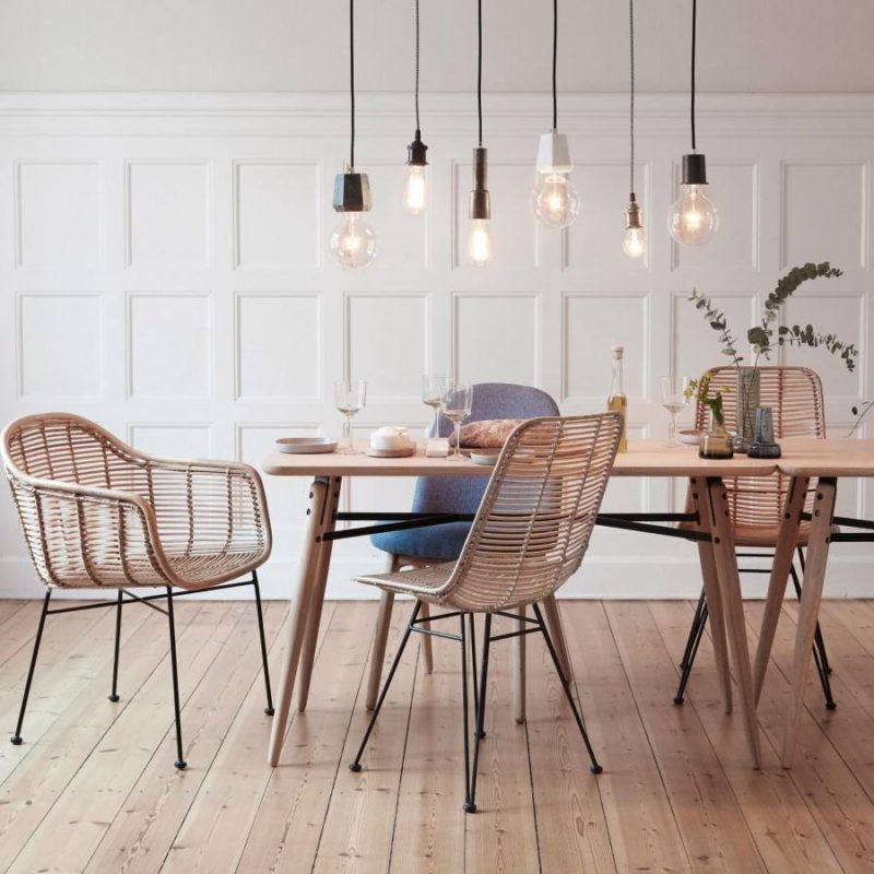 4. Moncolonel.fr / Ici, j’aime beaucoup les fauteuils en rotin que je trouve rétro et très chic à la fois. J’aime aussi les suspensions de lumière. Je me suis un peu lassée des ampoules filaments, je préfère un jeu d’ampoules classiques mais bien monté. Je pense que ce sera un des DIY de l’appartement !