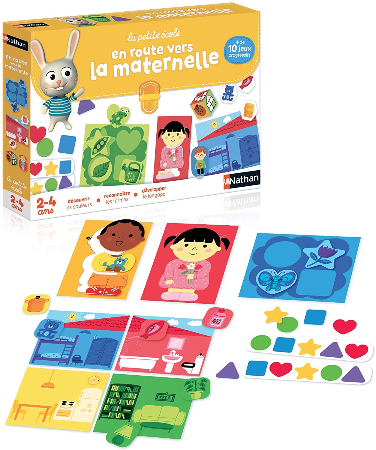– le jeu éducatif “En route vers la maternelle” de Nathan avec plusieurs jeux sur les couleurs, les formes et le langage de façon générale