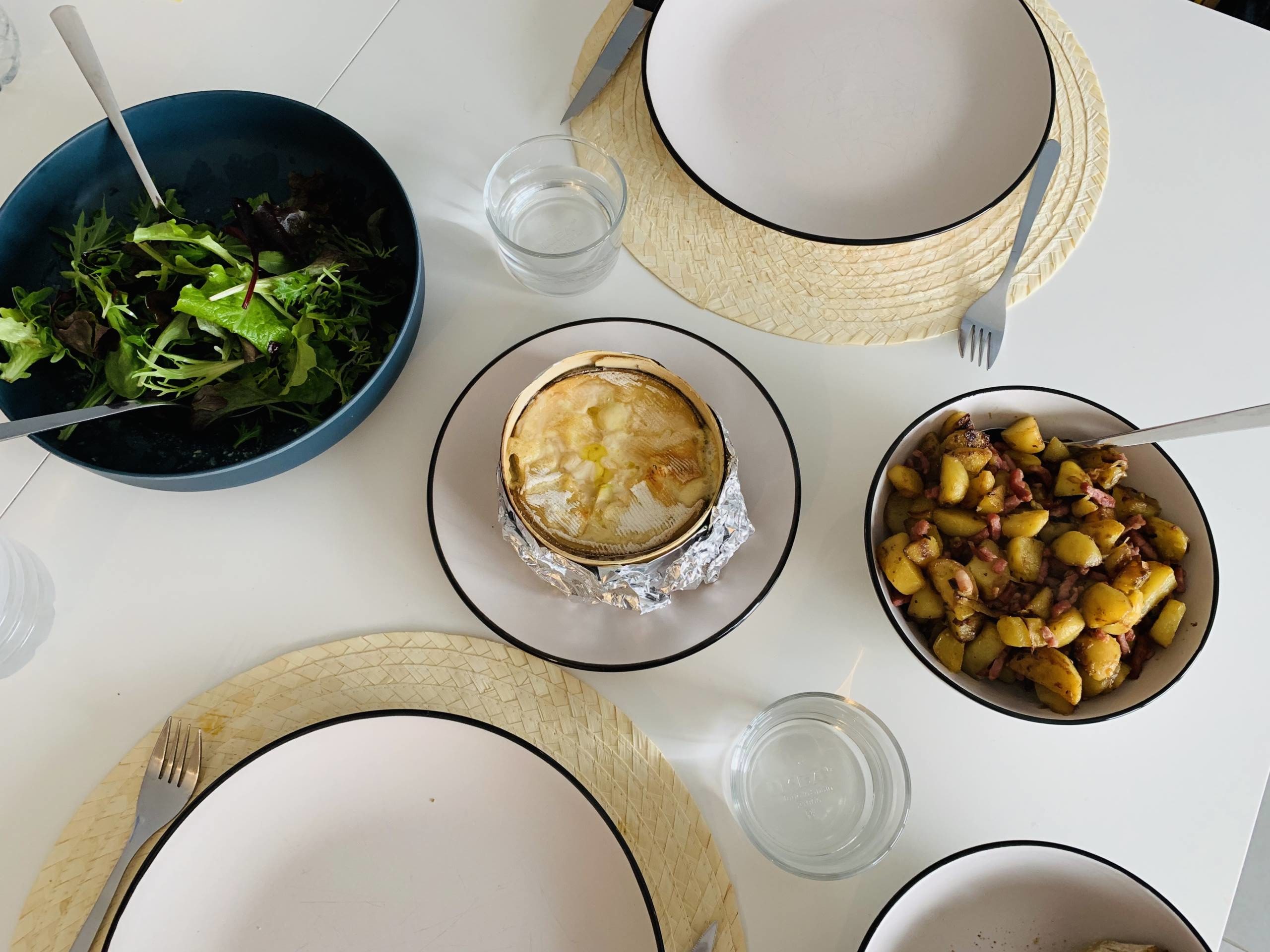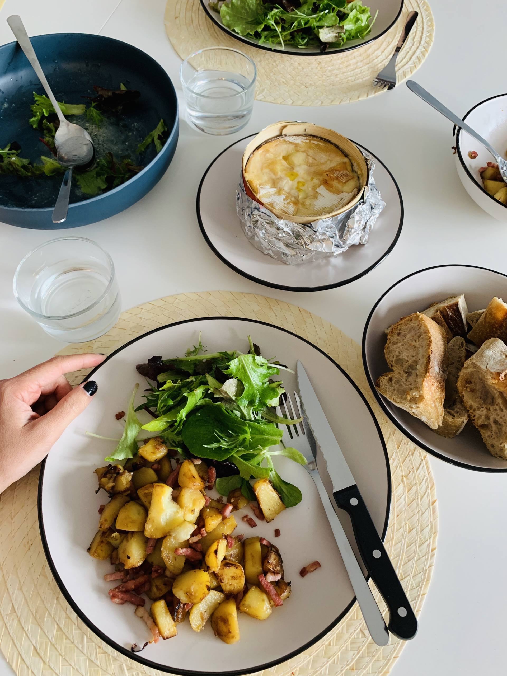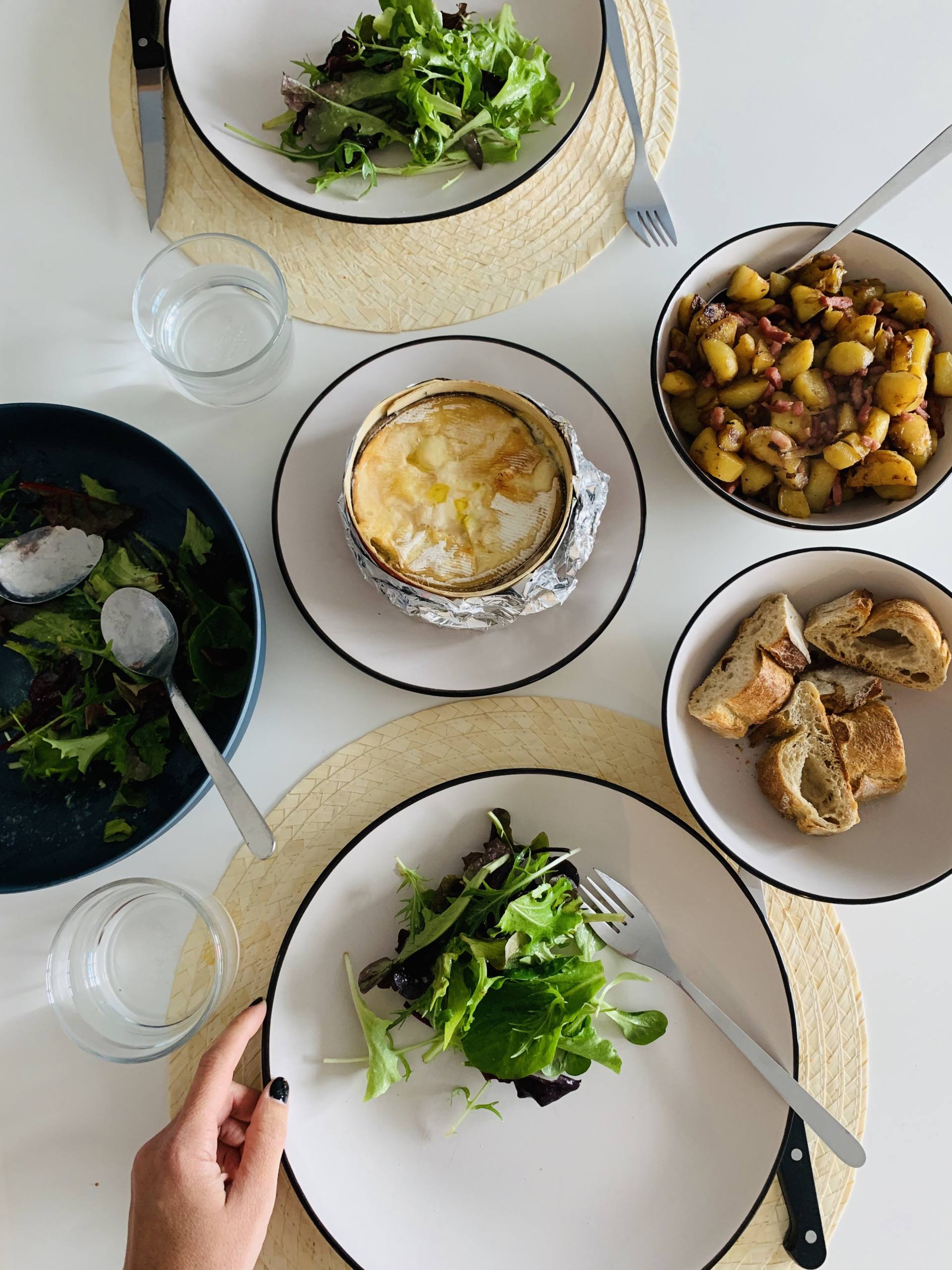 Rien que d’écrire le titre, ça m’a redonné envie ! Je n’avais pas mangé un Mont d’Or depuis bien longtemps. On a plutôt une alimentation équilibrée et saine. On fait très rarement des plats “fat” à la maison, ou alors parfois une raclette, une fondue, ou des crêpes quand on a des copains à la maison. Mais manger un Mont d’Or à deux, un midi, c’est assez improbable chez nous. Mais un jour où j’avais fait, j’ai vu ce Mont d’Or en faisant une course et il m’a donné envie ! Alors je l’a pris en me disant qu’on trouverait bien un moment pour le manger. On a mis deux semaines mais un weekend où il pleuvait, le samedi midi, j’ai craqué et j’ai préparer ce Mont d’Or en version cuit au four, accompagné d’une petite salade et d’une poêlée de pommes de terre aux lardons et oignons. Allez, je vous donne la recette et je vous montre tout ça !