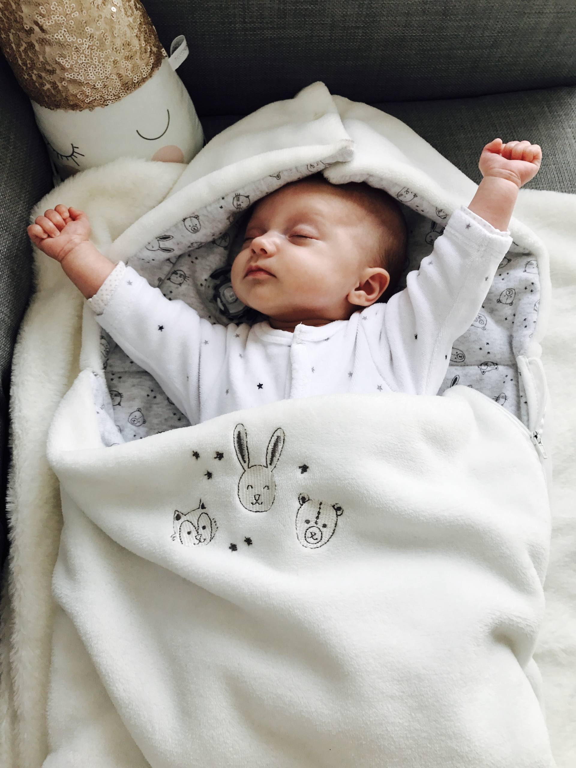 On a aussi plusieurs couvertures à mettre sur le canapé et/ou pour la couvrir. Pour l’installer, j’adore une couverture Zara Home que des amies m’ont offerte pour ma baby shower. Elle est hyper douce, blanche et elle a la taille idéale. C’est encore celle dont je me sers le plus. Pour la couvrir, j’en ai plusieurs. J’ai la jolie couverture blanche avec des sapins de chez Fine Little Day. Elle est canon, j’ai beaucoup aimé l’utiliser à la maison et elle m’a par la suite servie en poussette ! Je vous ai déjà parlé de la couverture Stokke qu’on utilise énormément aussi depuis sa naissance et même encore aujourd’hui pour la couvrir dans son lit car elle ne veut plus de gigoteuse depuis longtemps.