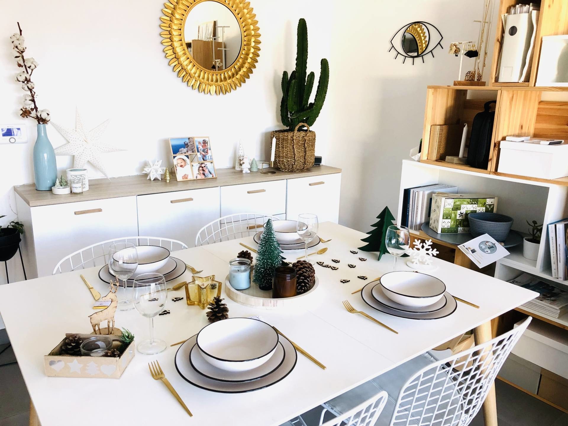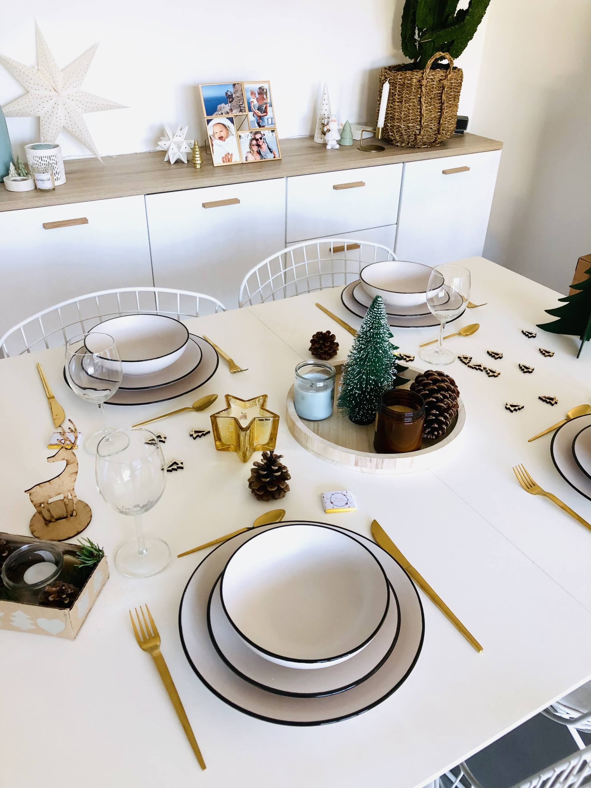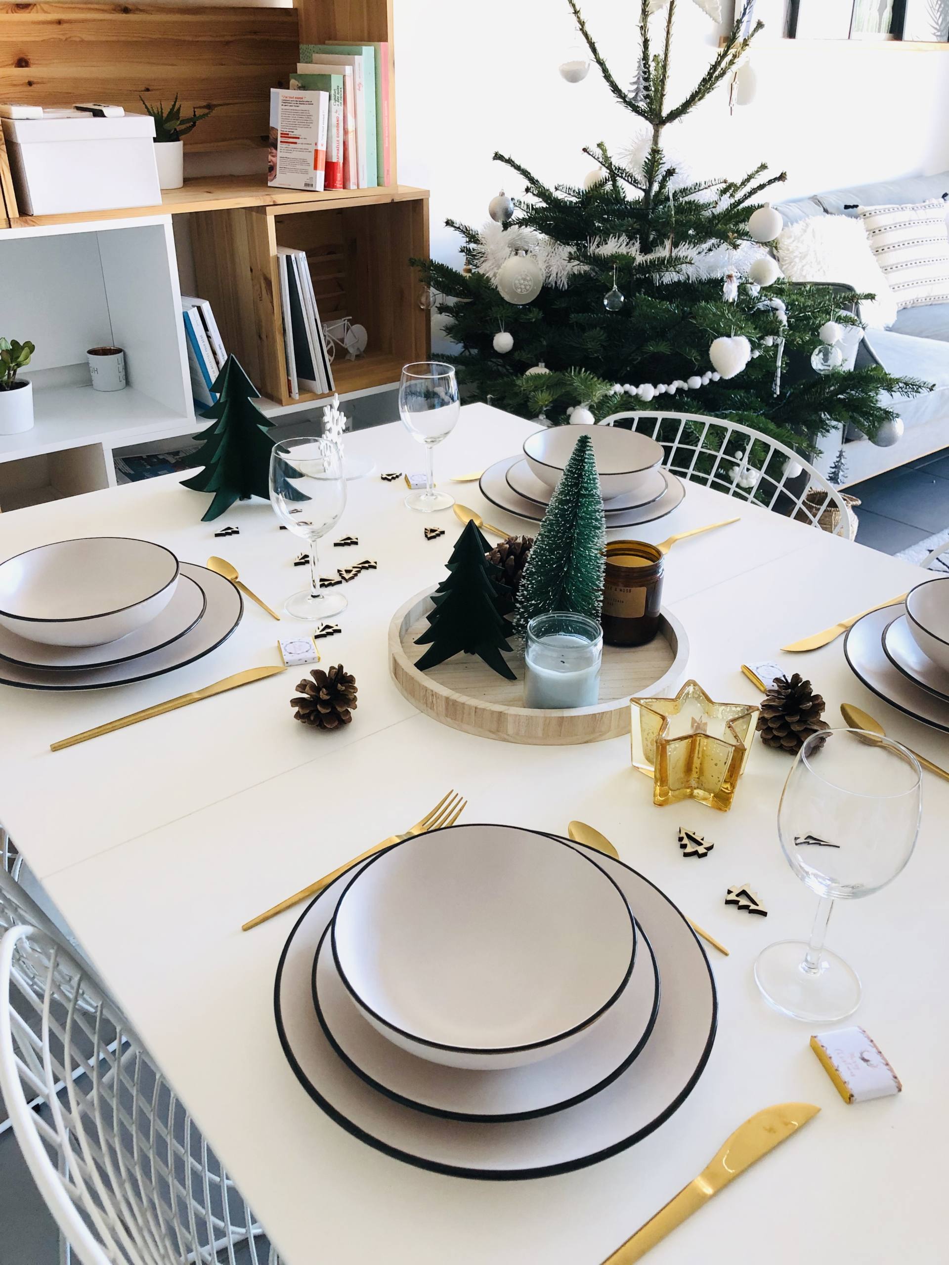 Très jolie table : sobre et chic ! Ces couverts dorés, tu les sors uniquement pour recevoir ? Ils sont très jolis. Et ce plateau en bois…je pense aller faire un tour chez Sostrene green, tiens 😉 Vos invités ont dû se régaler…Passe de belles fêtes de fin d’année aussi ! A très vite par ici ou sur Insta 🙂