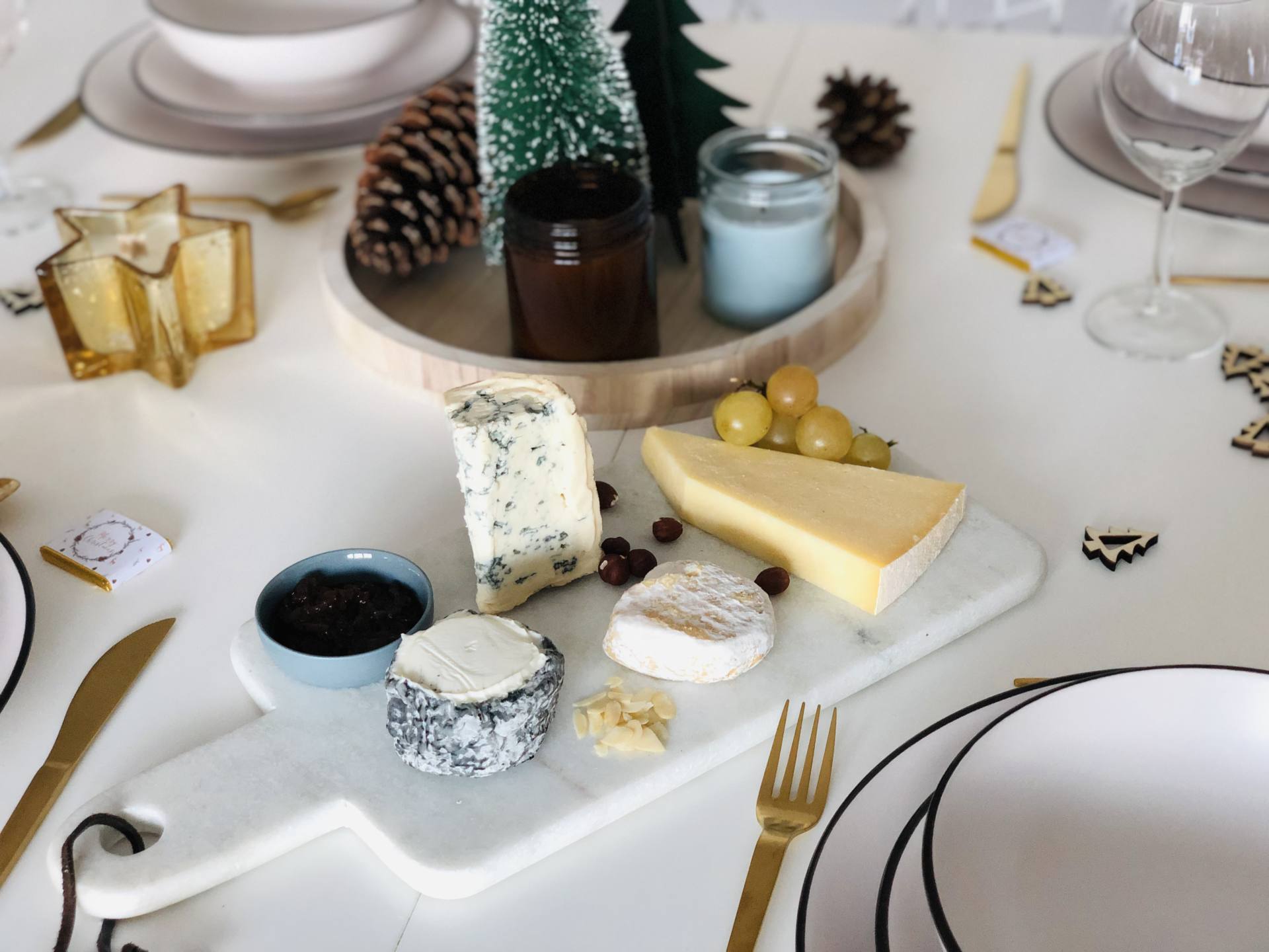 Pour le fromage, je teste pour la première fois la box “La Boîte du Fromager“. Tout comme les box beauté, il existe une box pour déguster des fromages. Au-delà du fait que cela permet de recevoir son plateau à domicile, l’autre avantage est que ça permet de découvrir de nouveaux fromages, de nouvelles saveurs. Pour cette fois, il y en avait 4 dans la box donc ce sera un Cantal AOP, de la Fourme d’Ambert, du Saint Marcellin et un Chabis Cendré. Je ne connaissais par exemple pas ce fromage et ça a l’air trop bon ! Il y a deux types de boites, à 19,90€ (fromages de qualité) par mois ou 34,90€ par mois (fromages plus rares). Je vais les présenter sur une planche en marbre que j’adore, et les servir avec un peu de raisin, des noisettes et du confit d’oignons.