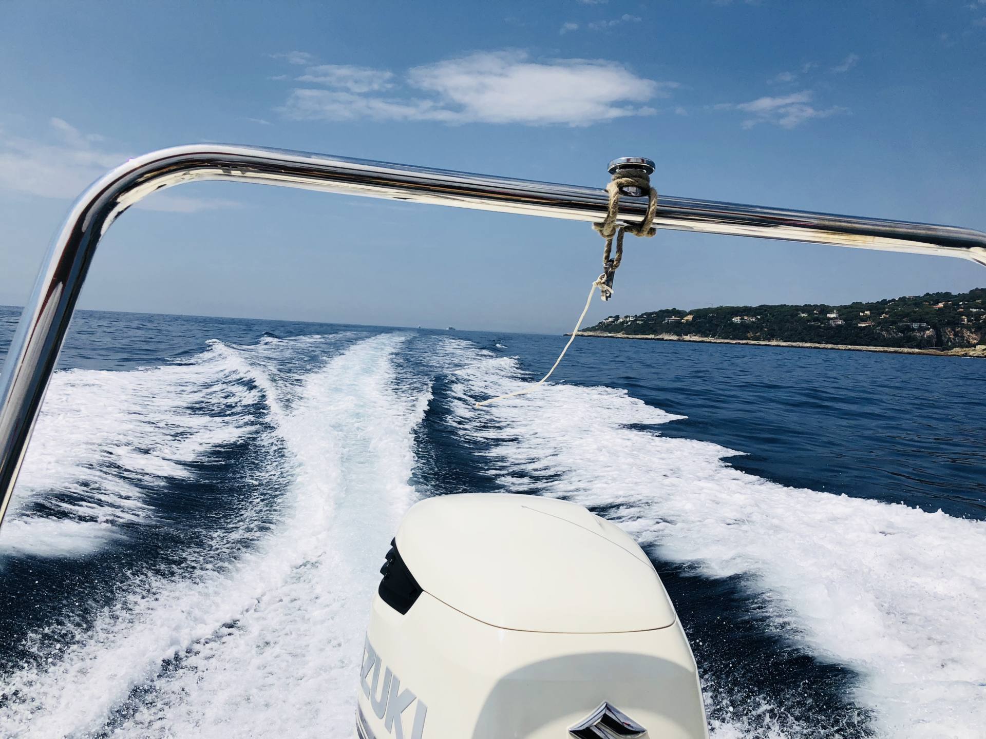 Rent my boat est le seul loueur de bateaux physique sur le port de Nice. Hyper facile à trouver, il s’agit d’une barraque côté colline du château. Ils ont plusieurs types de gabarits de bateaux. Ce jour-là, on a navigué avec un bateau à moteur canon qui peut accueillir jusqu’à 8 personnes. C’est une super option pour partir à la journée entre amis ! On peut s’allonger à l’avant, s’asseoir à l’arrière. Il y a une table et un auvent pour l’apéro, une échelle et la possibilité de louer une bouée pour faire de la bouée tractée !